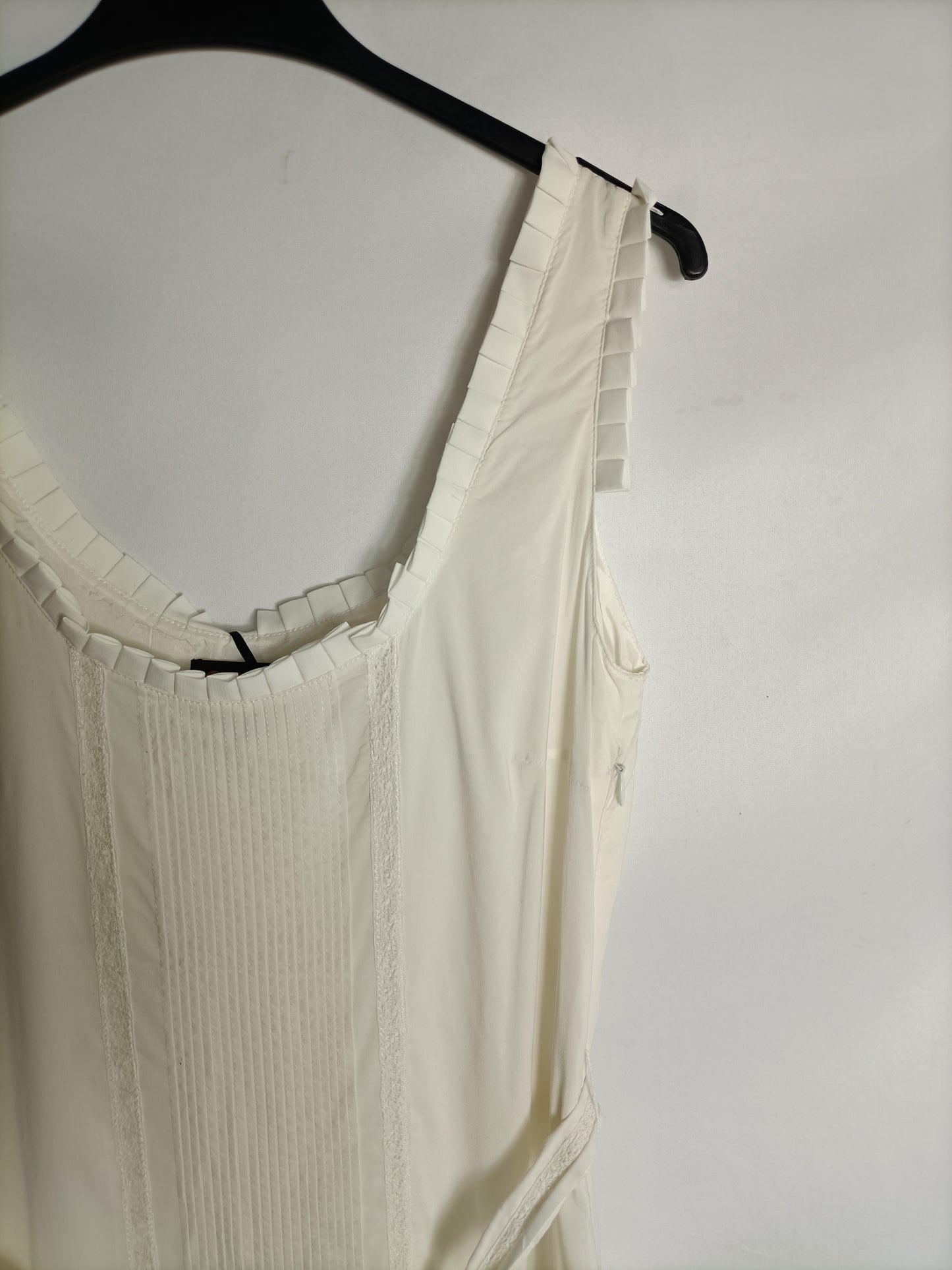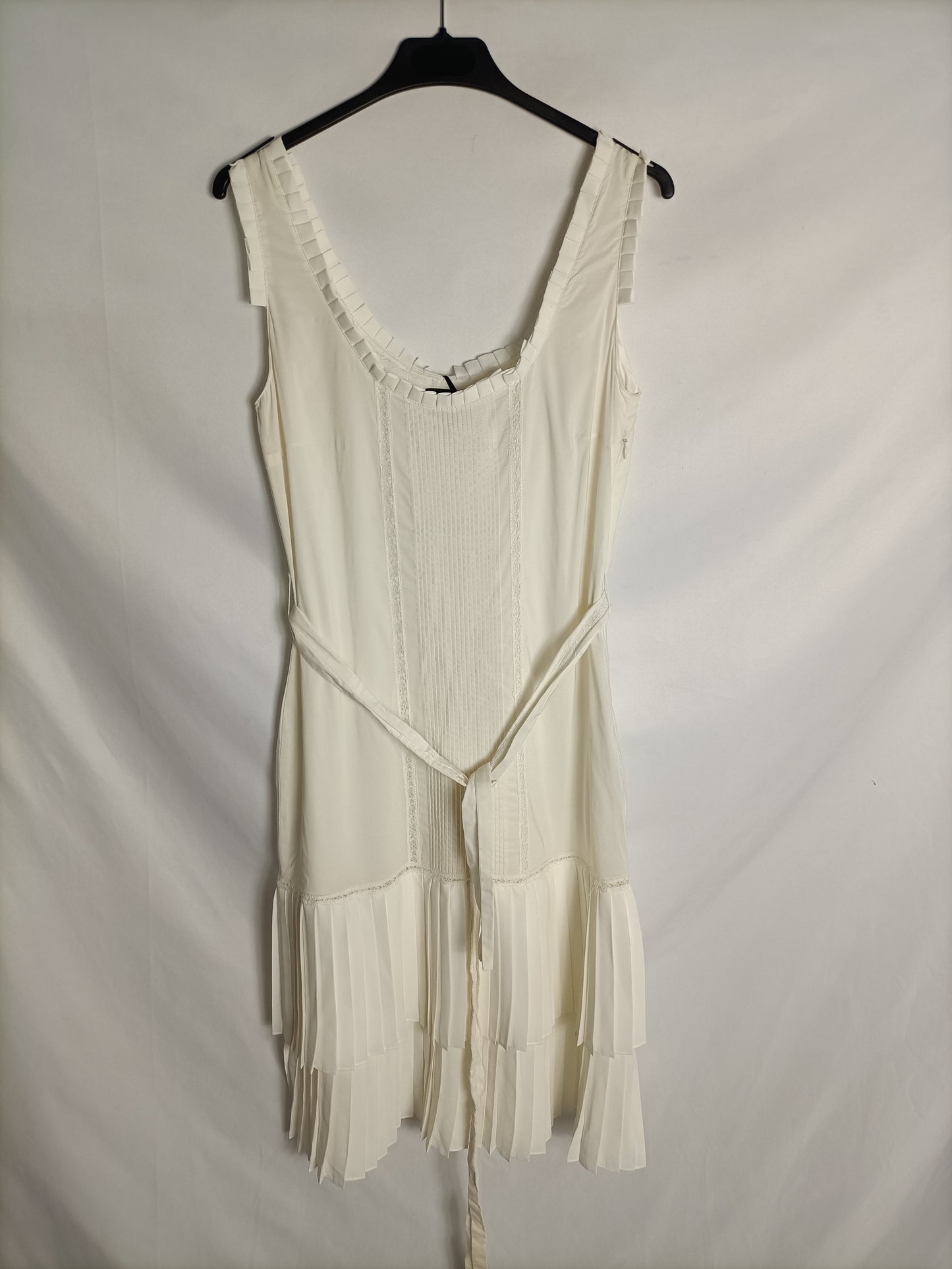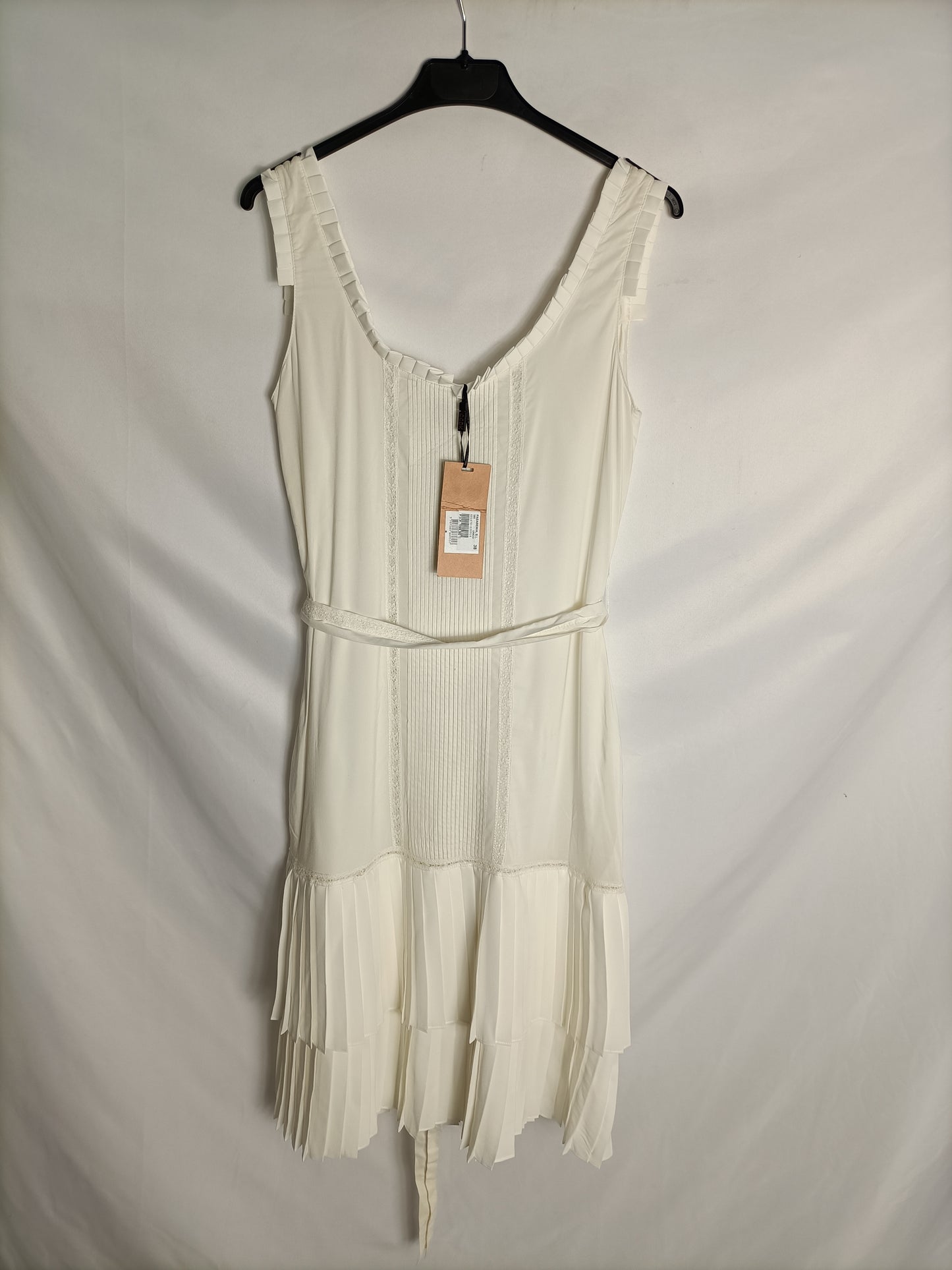 CCDK.Vestido midi blanco encaje y tablas T.38