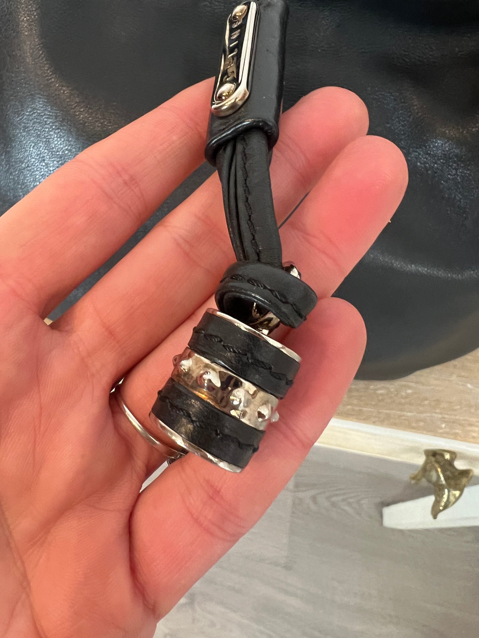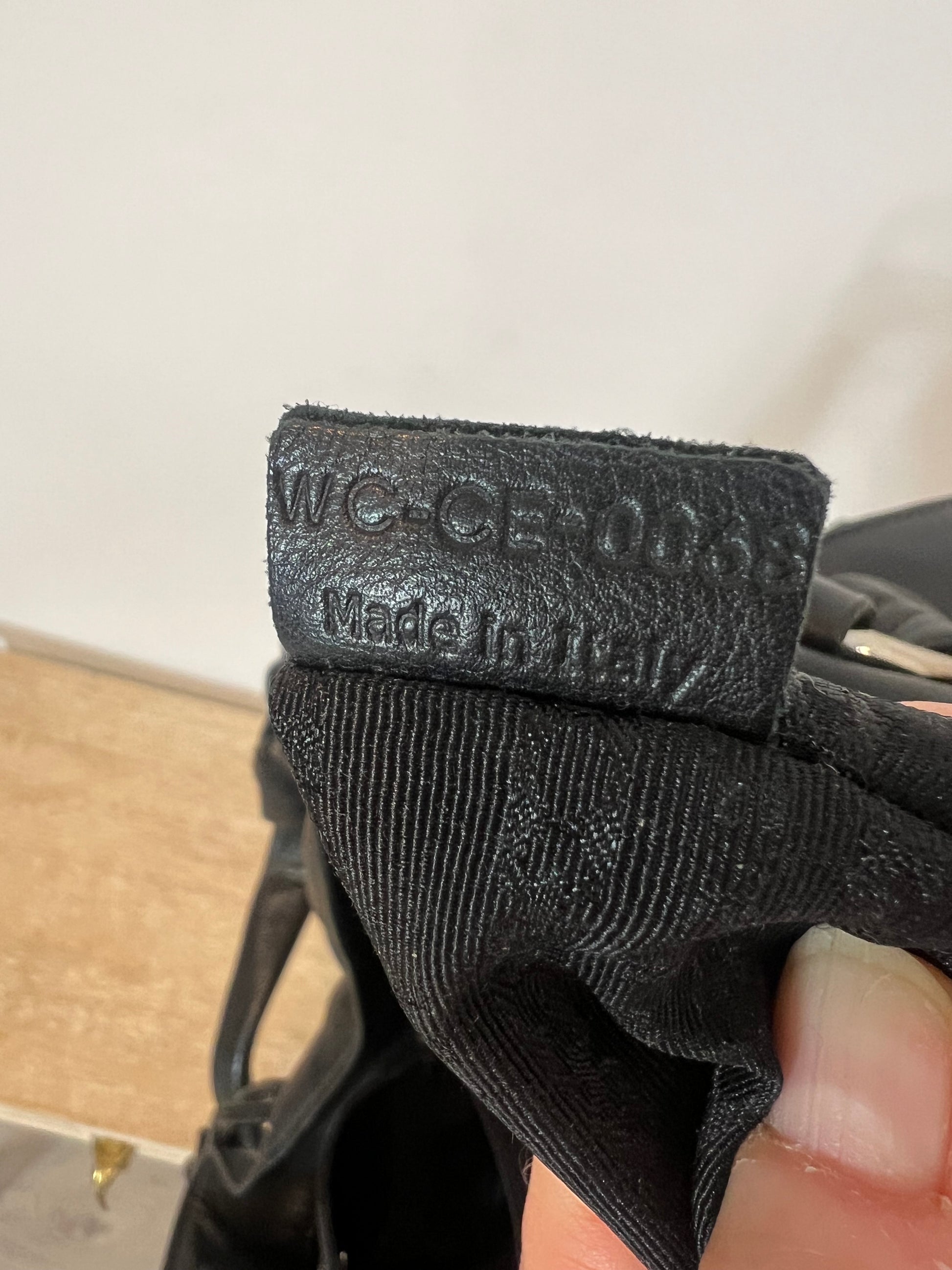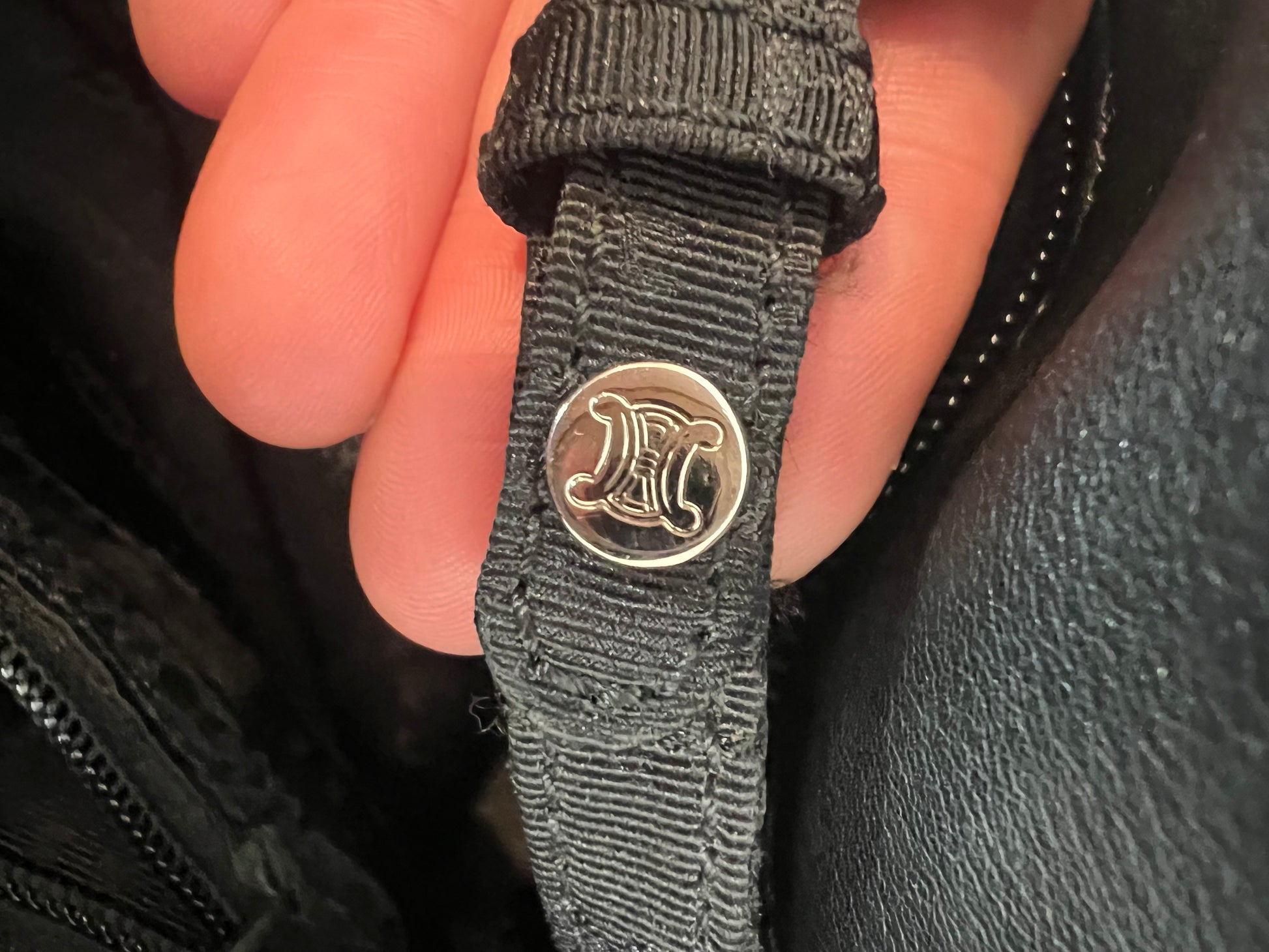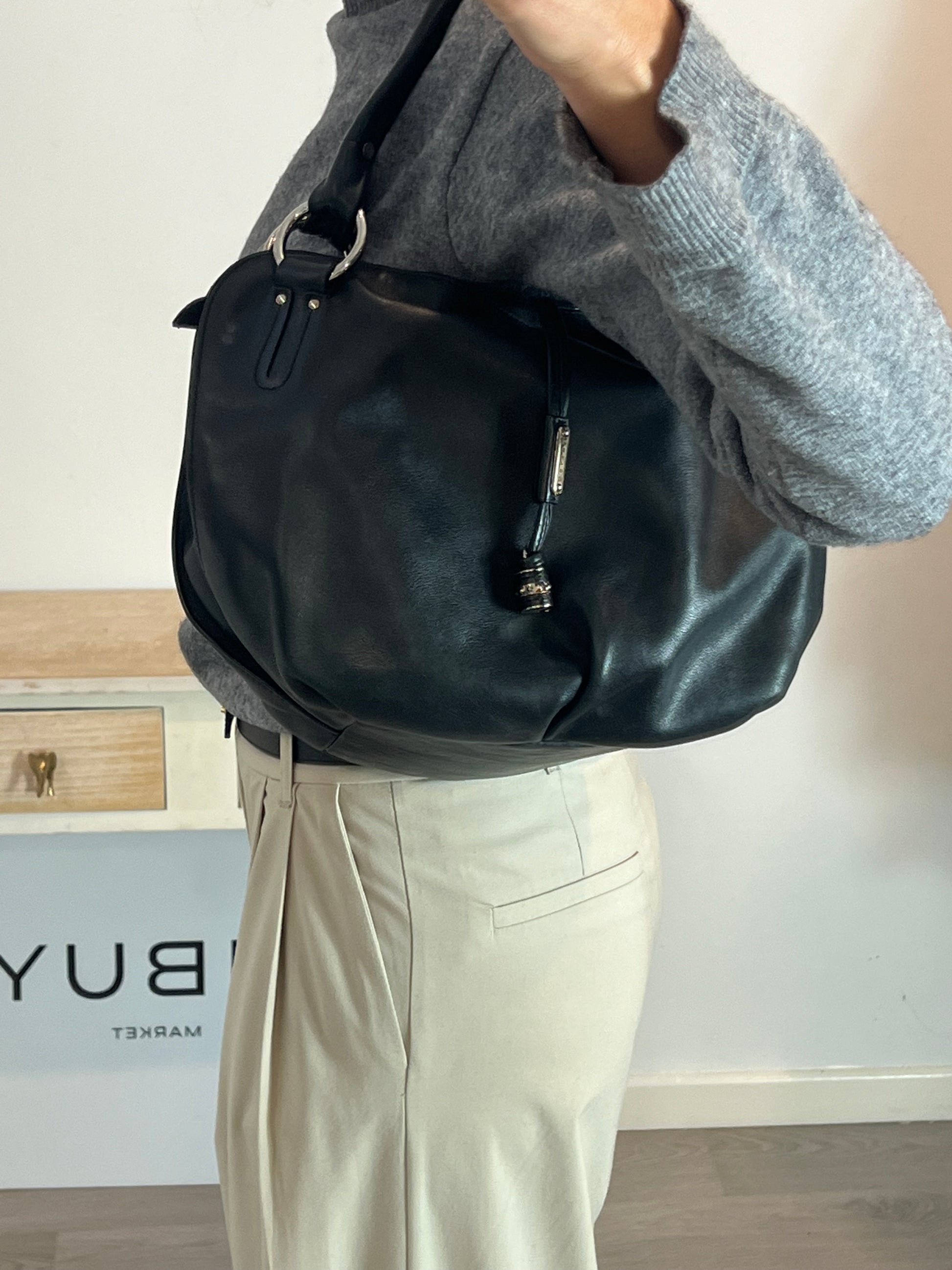 Bolso negro piel mediano. Referencia en el interior (foto. Tara: alguna marca en la piel (foto). Ancho 38 cm, alto 26 cm