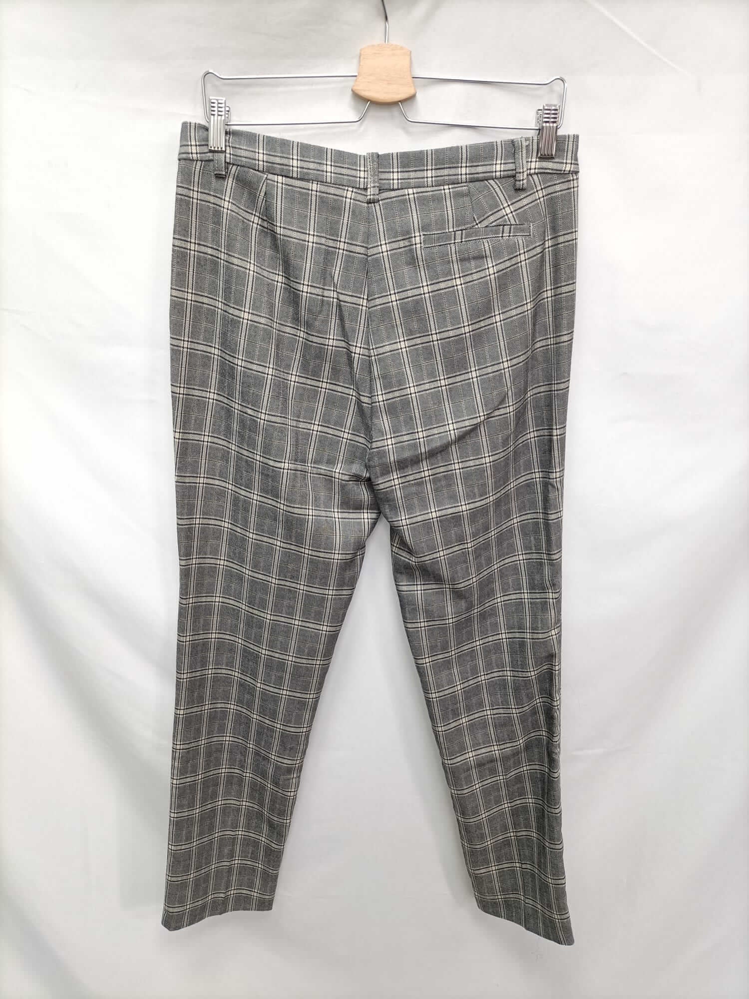Celop. T.42. pantalón gris de cuadros estilo chino de vestir. No elástico, recto y fino. Cintura 42 cm largo 102 cm