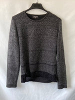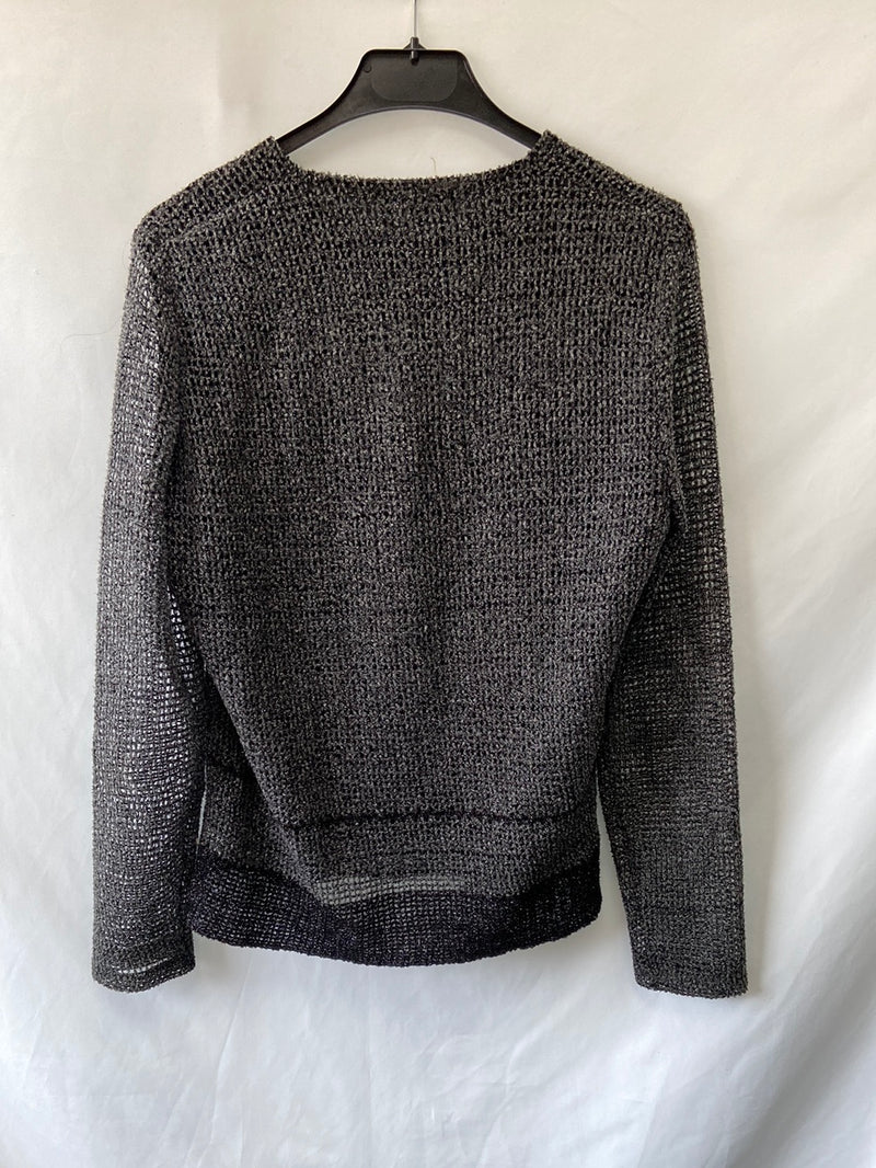 Jersey gris punto abierto con hilos plateados y forro interior. Elástico.