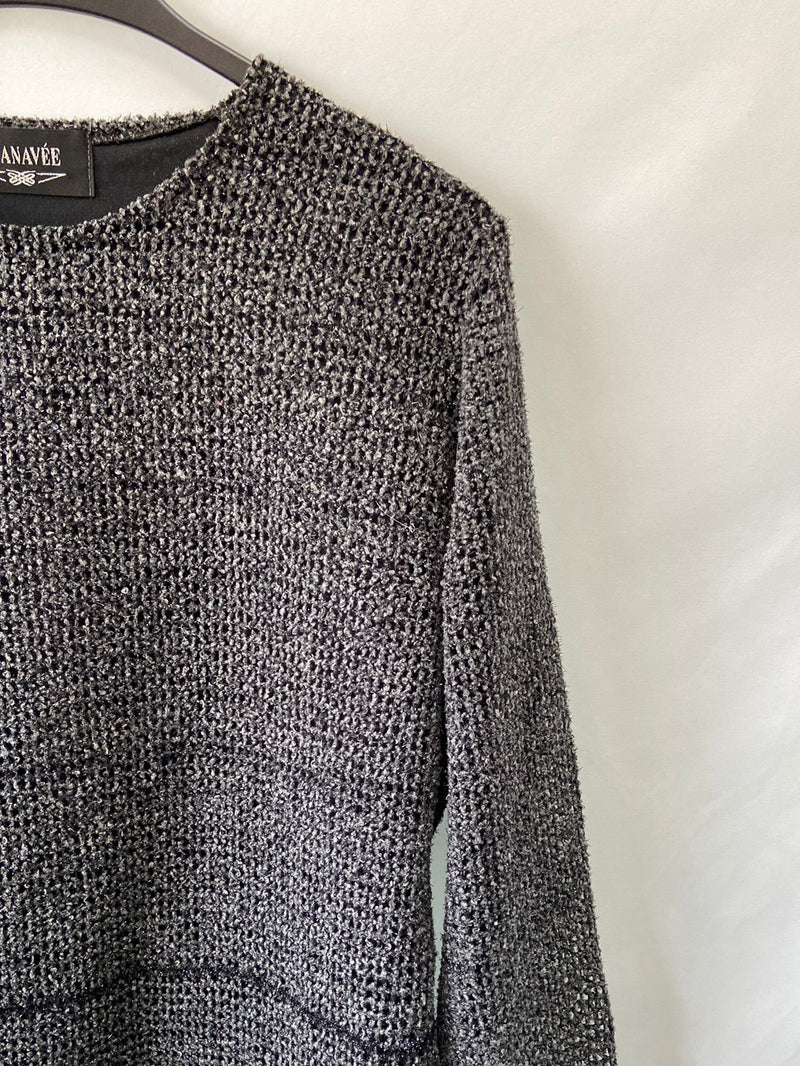 CHANAVÉE. Top punto amplio gris T.l