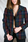 Chaqueta de cuadros escoceses de tela de franela gruesa. Solapa y bolsillos.