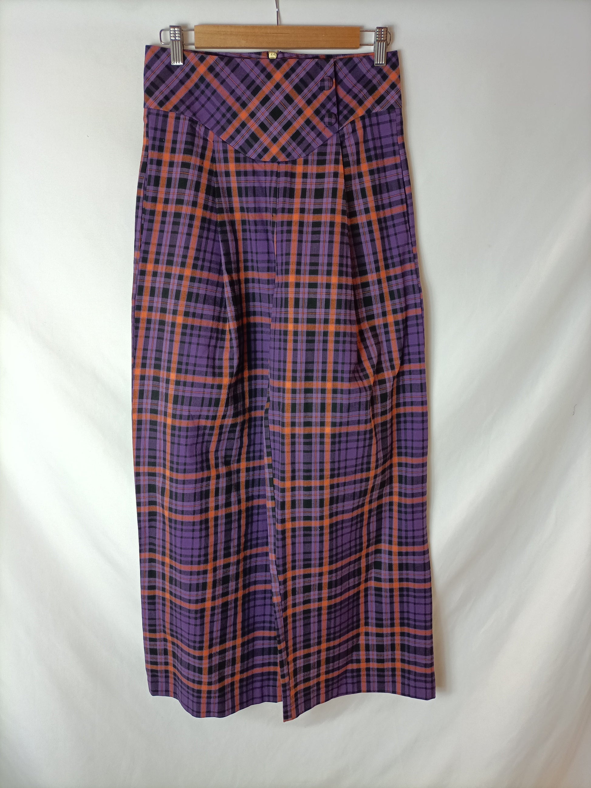 NUEVO CON ETIQUETA. Pantalón ancho de cuadros cintura estilo fajín. Cintura 36 cm