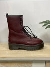 botas polipiel burdeos con cordones. TARA: le falta los cordones a una de ellas