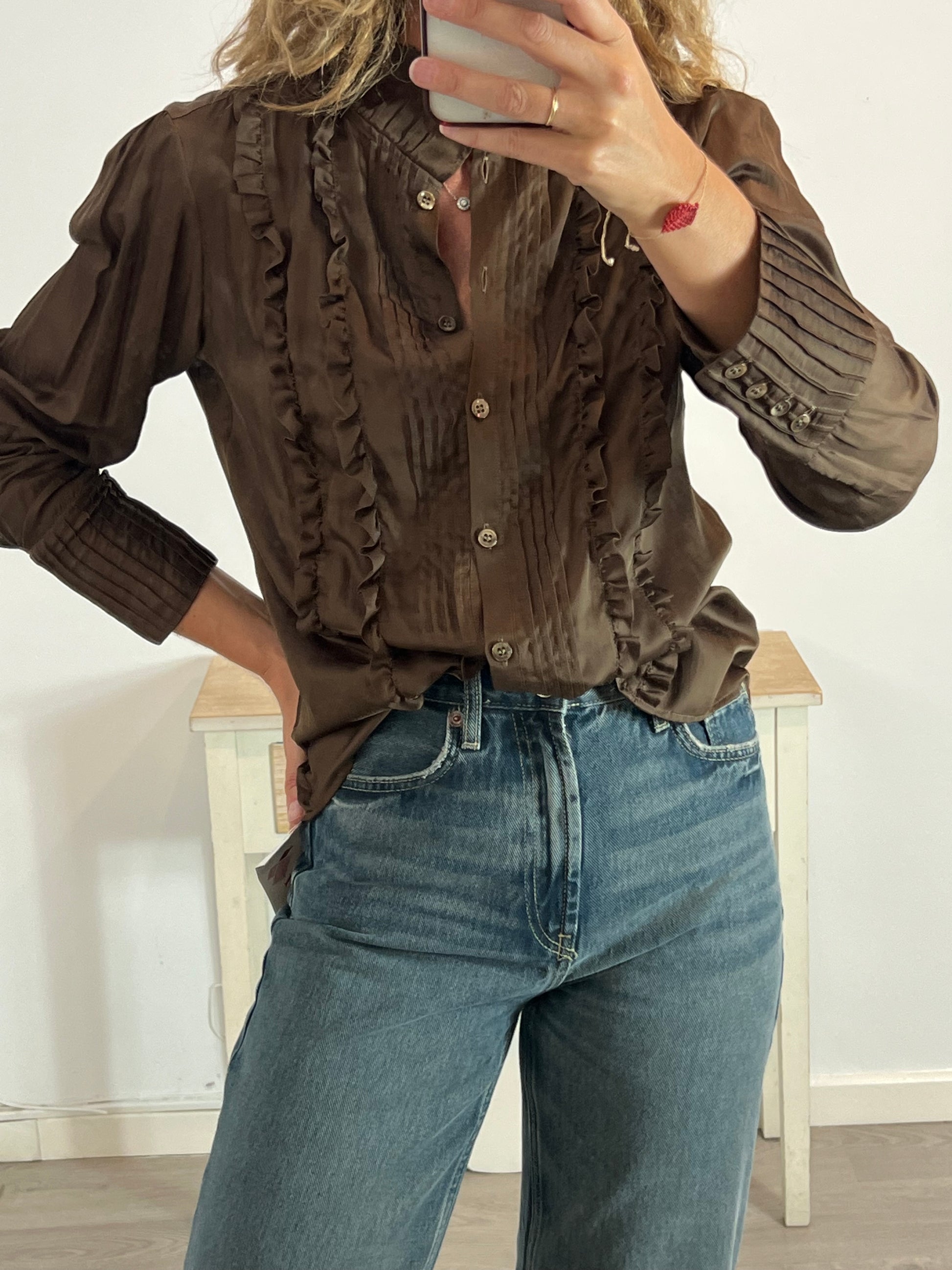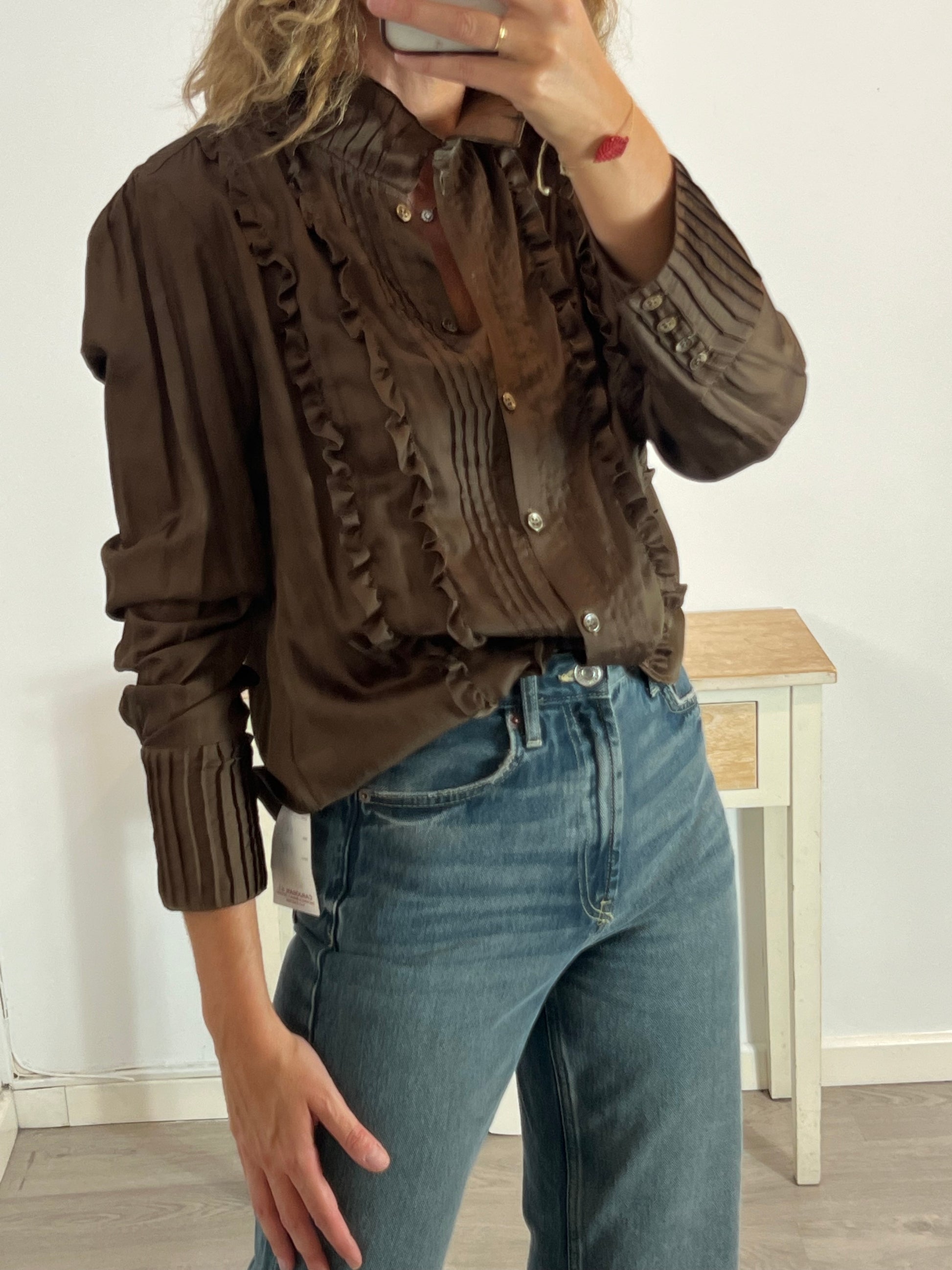Blusa marrón con detalle de volantes. Espalda 43 cm Largo 62 cm