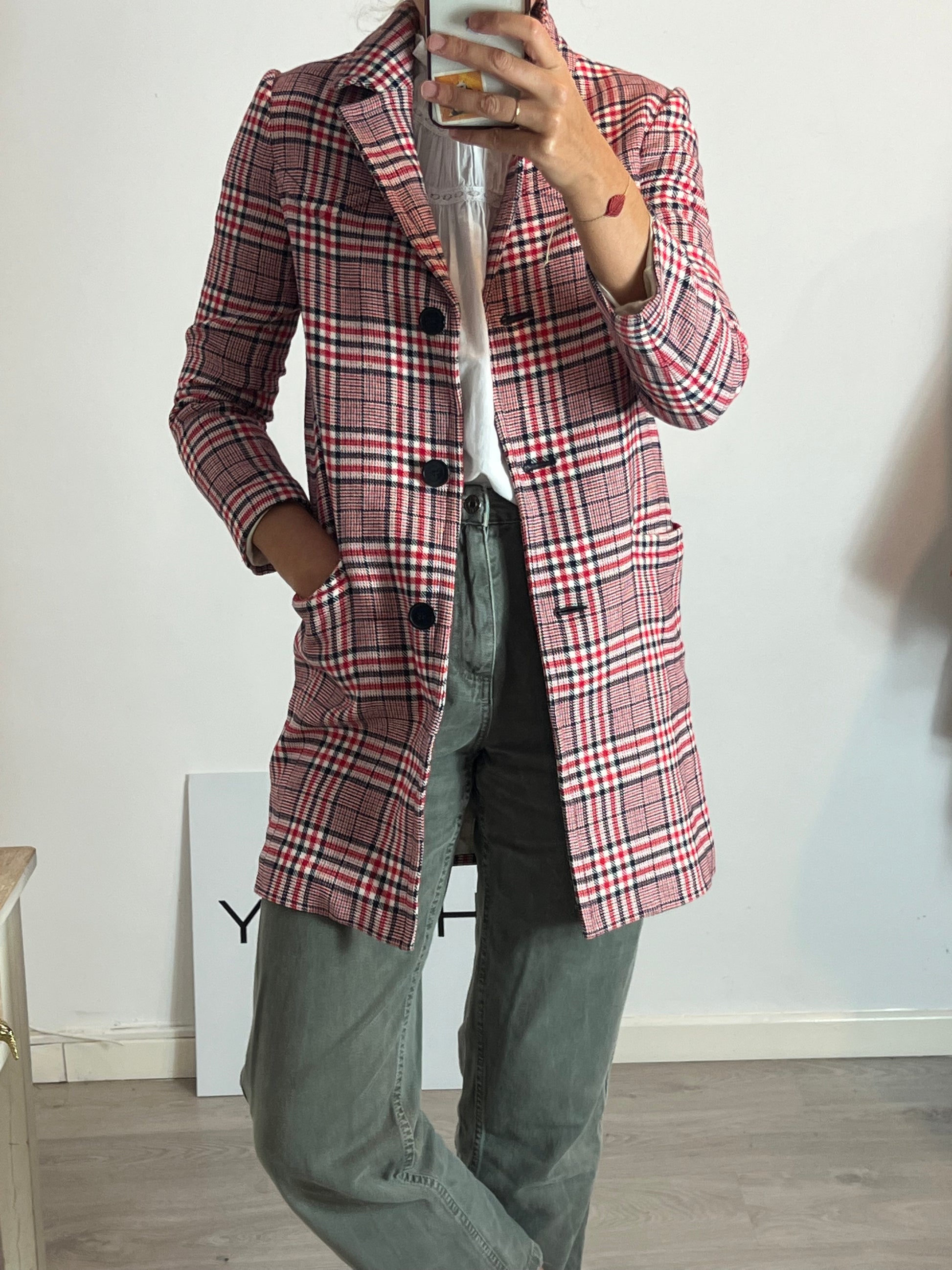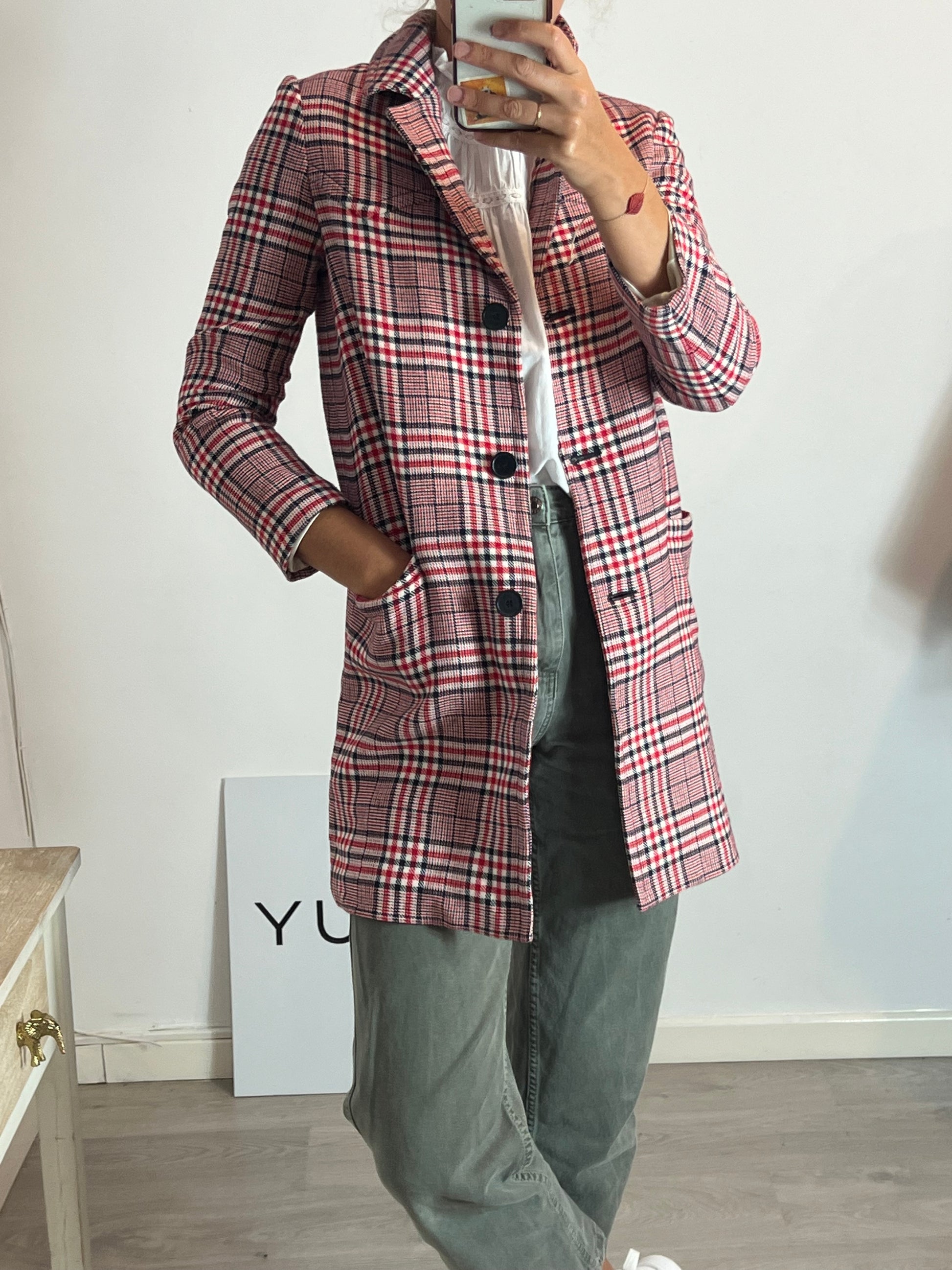 CLAUDIE PIERLOT. Abrigo fino cuadros. T S