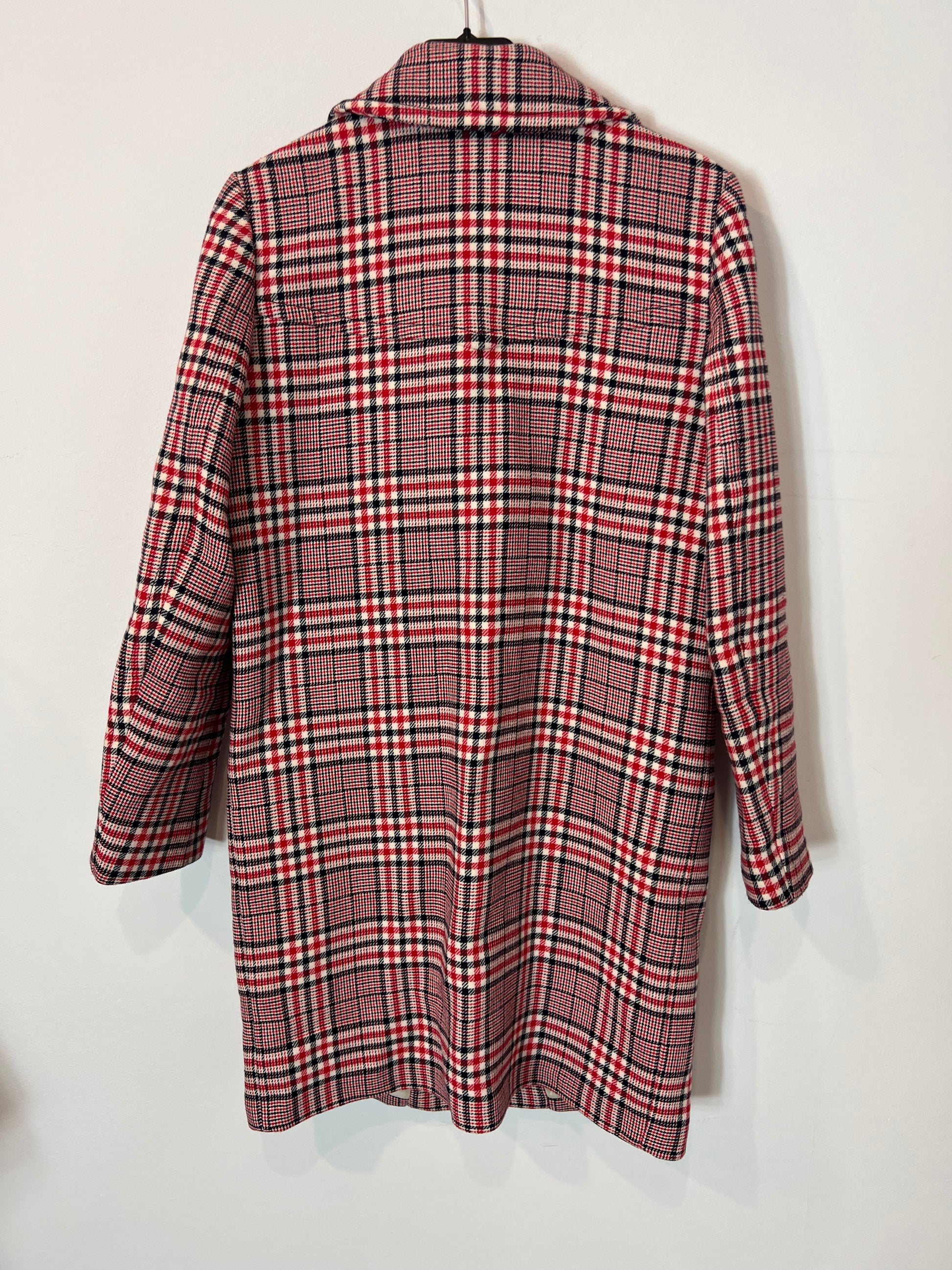 Abrigo fino cuadros rojos y azules. Hombros 38cm, de sisa a sisa 46cm, largo 85cm
