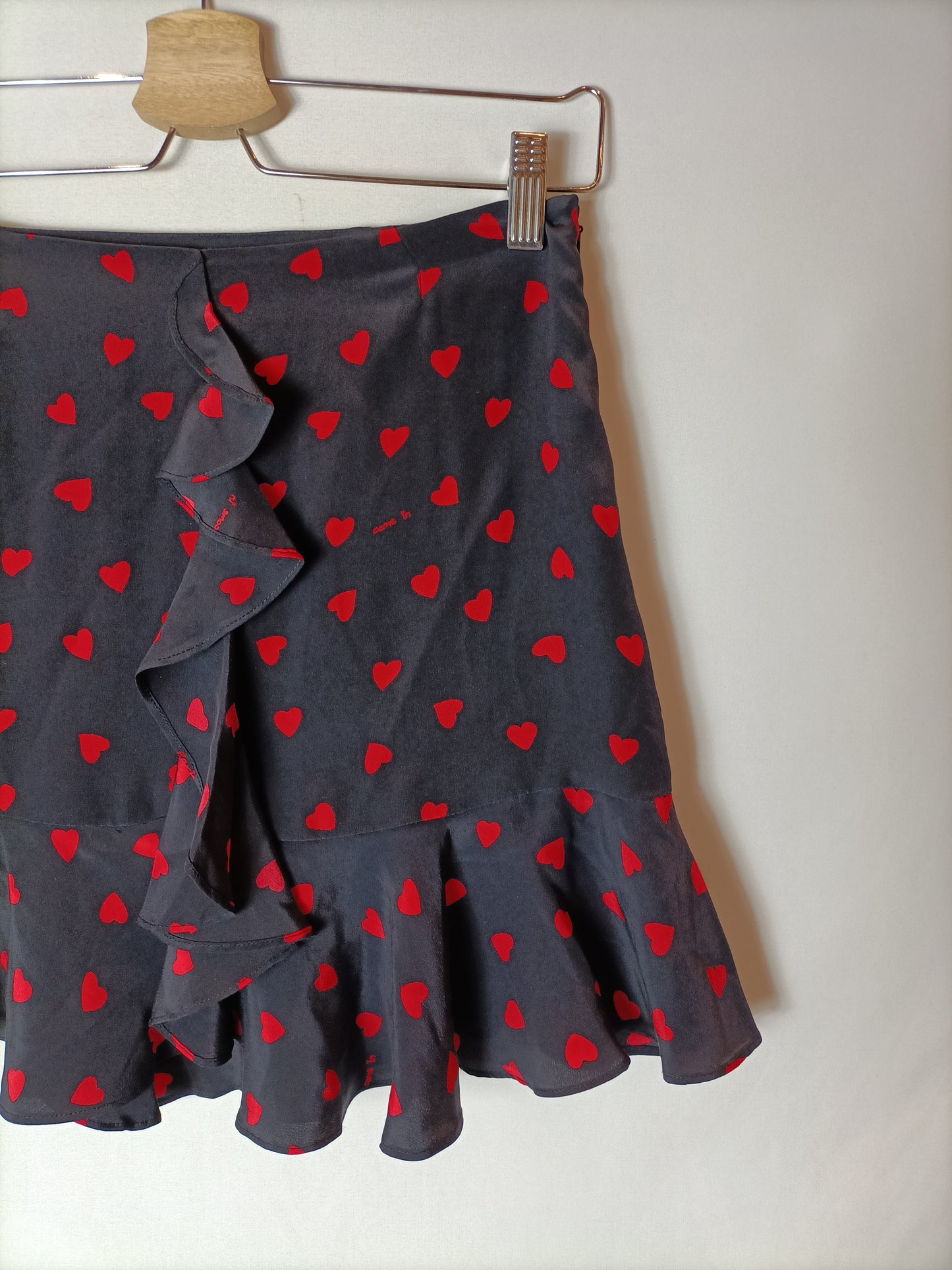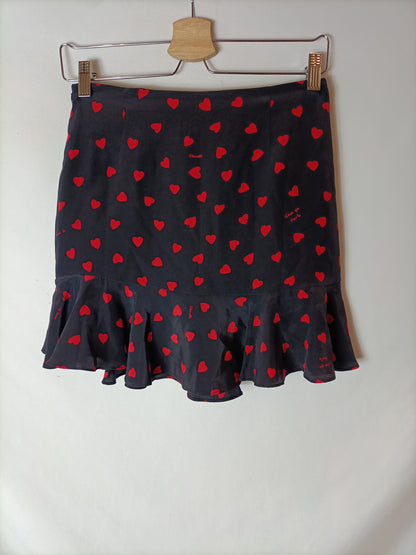 100% seda. Falda negra corazones rojos. Cintura 36 cm