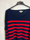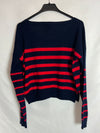 CLAUDIE PIERLOT. Jersey azul rayas rojas. T 1 (S)