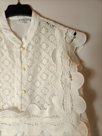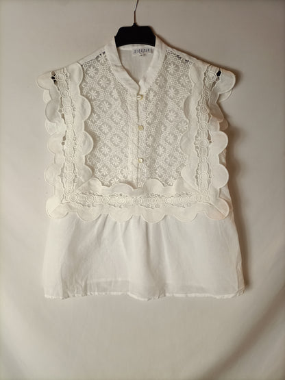 CLAUDIE PIERLOT. Top blanco encaje. T 36