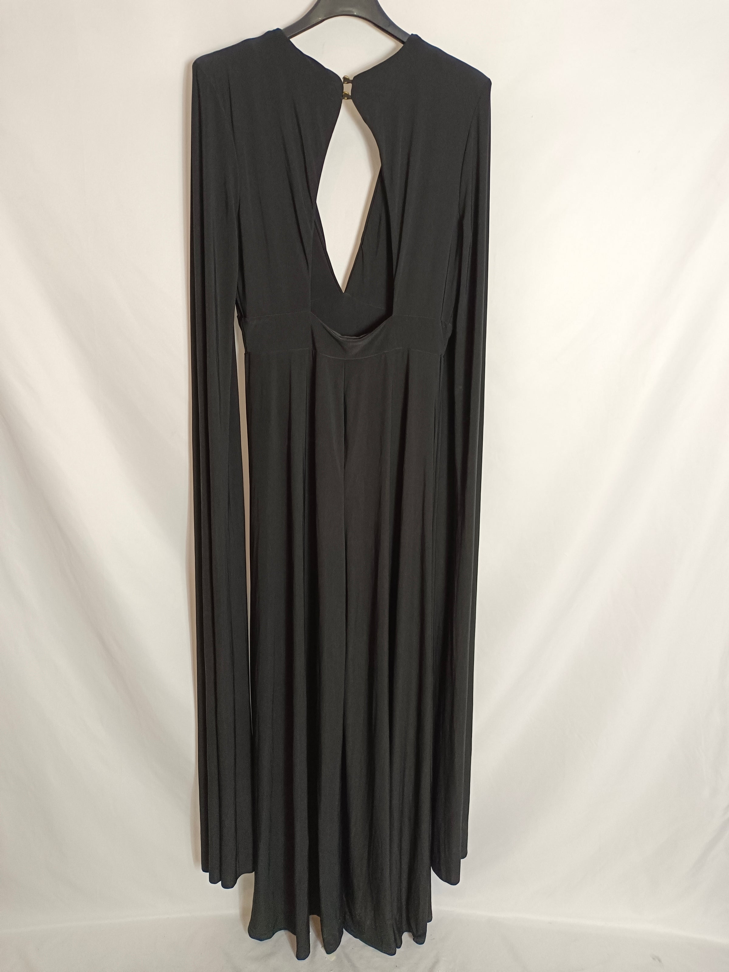 NUEVO CON ETIQUETA. mono largo negro de licra con mangas estilo capa largas