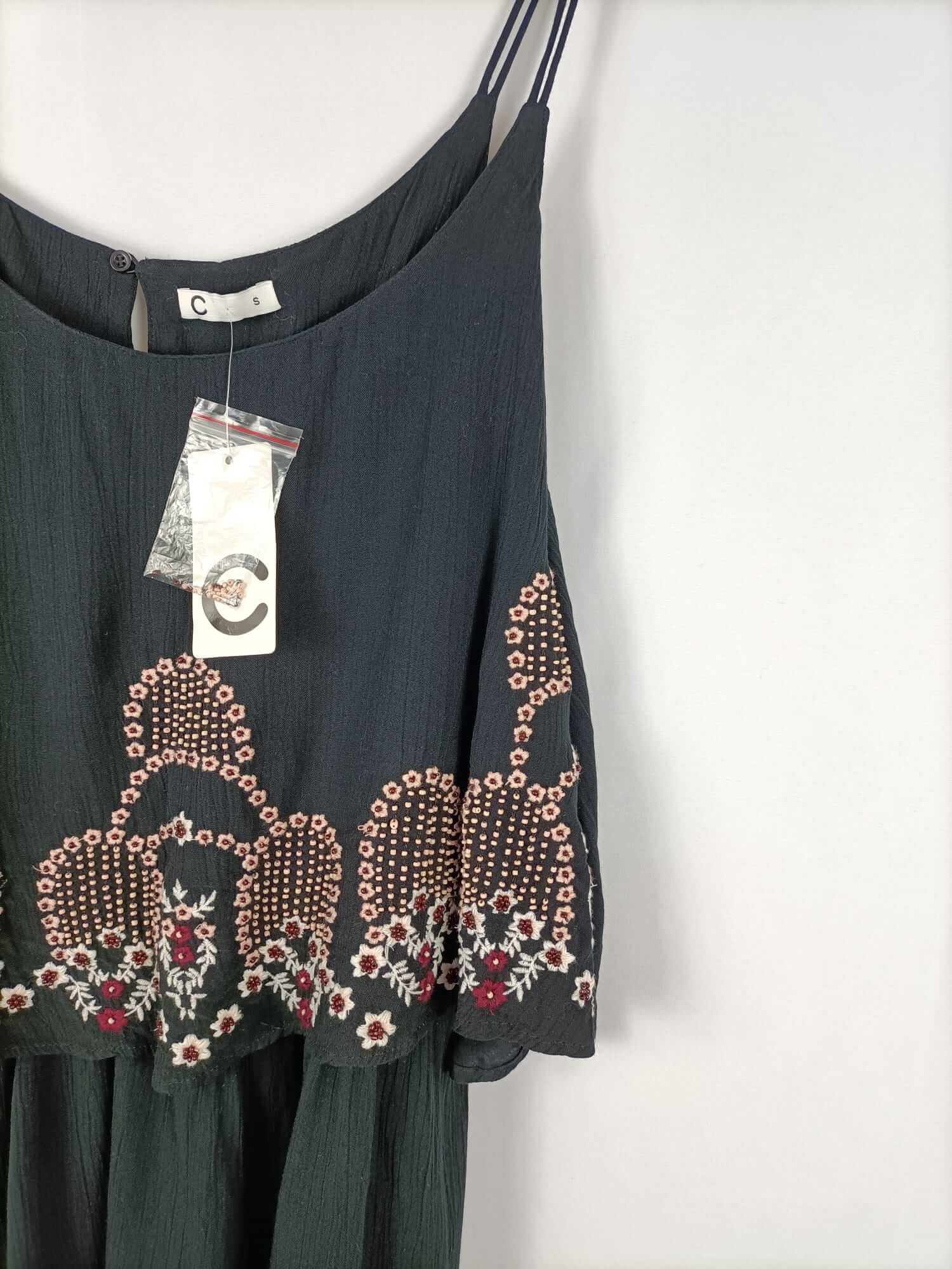 C.mono negro bordado abalorios T.s