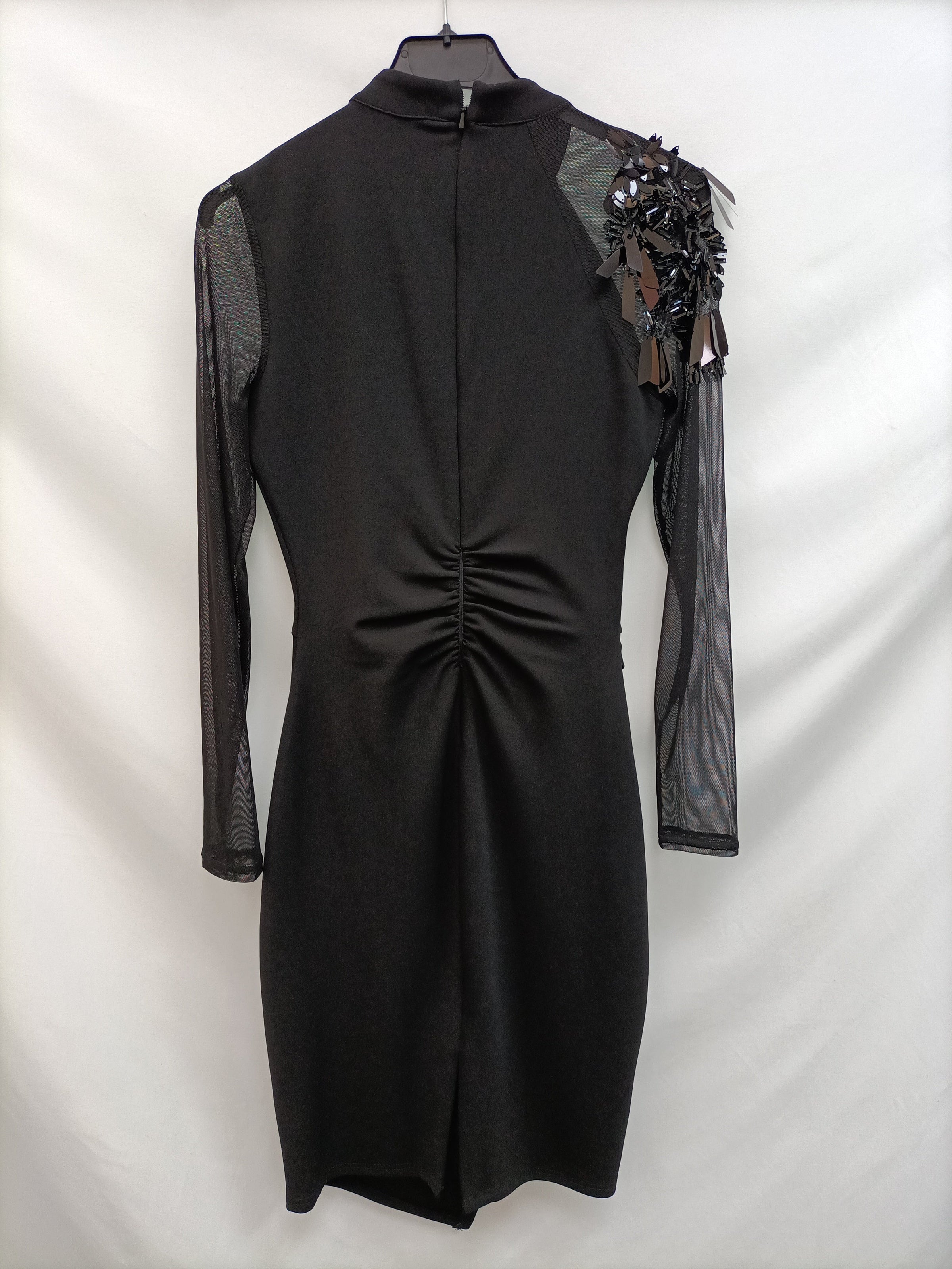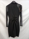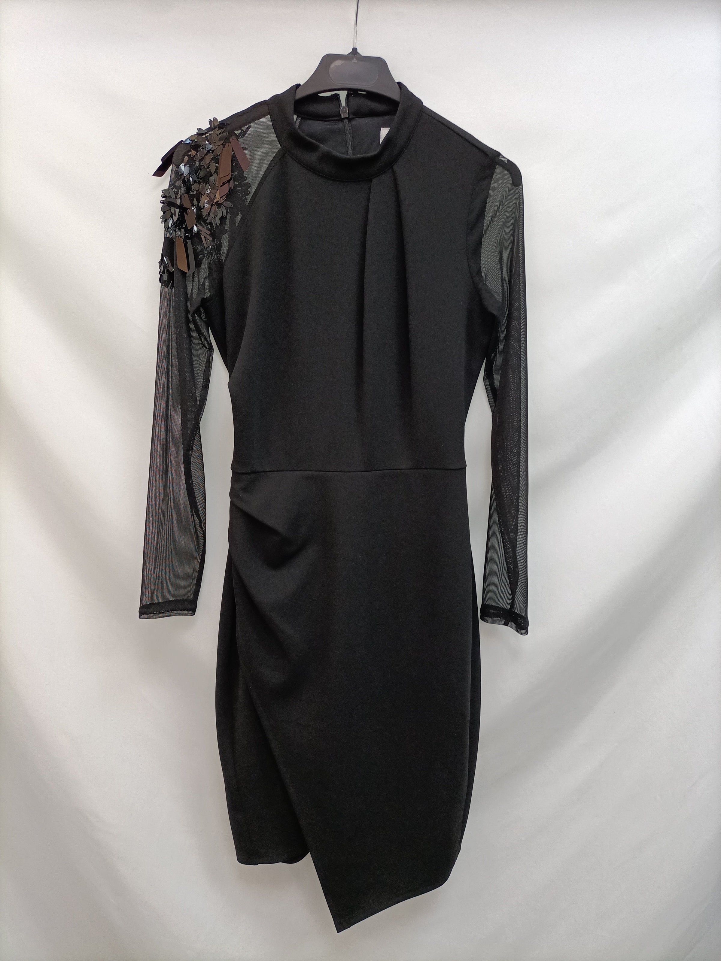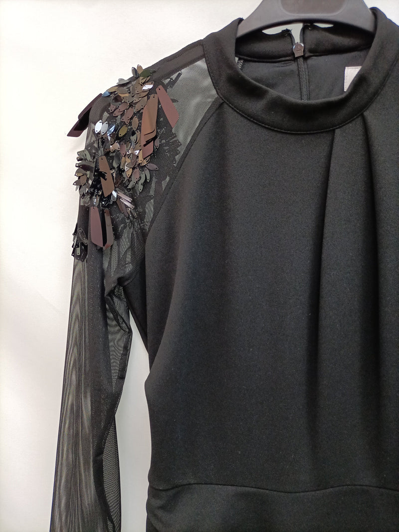 Vestido negro midi mangas de tull uy lentejuelas. Largo 98 cm