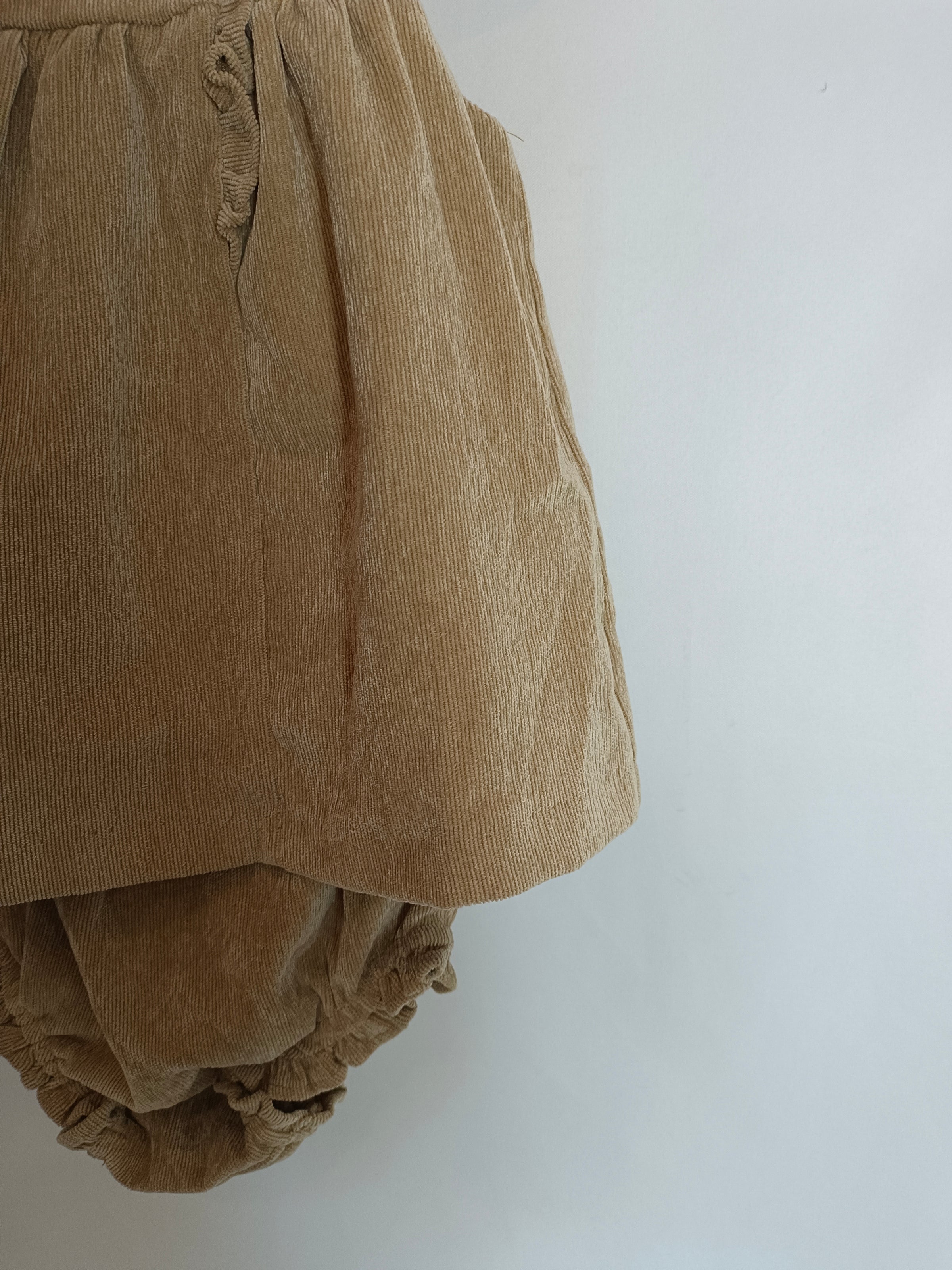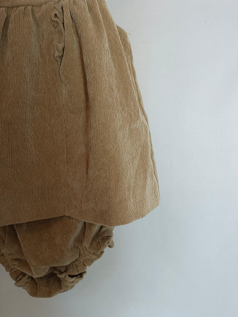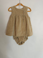 COCONUT. Vestido vestido y culetin beige pana T.9-12 meses