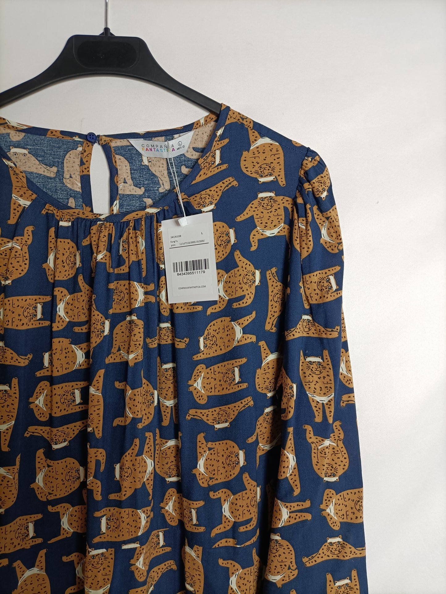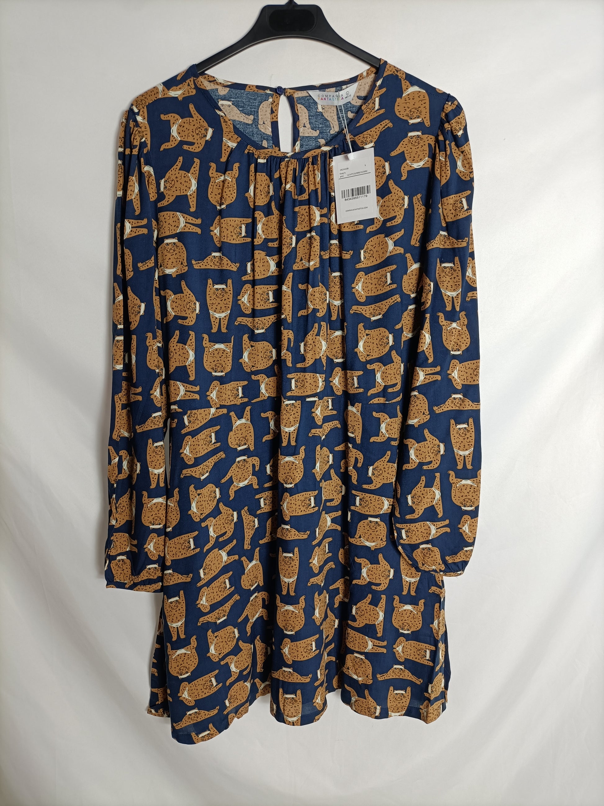 COMPAÑIA FANTASTICA. Vestido corto estampado gatos t. L