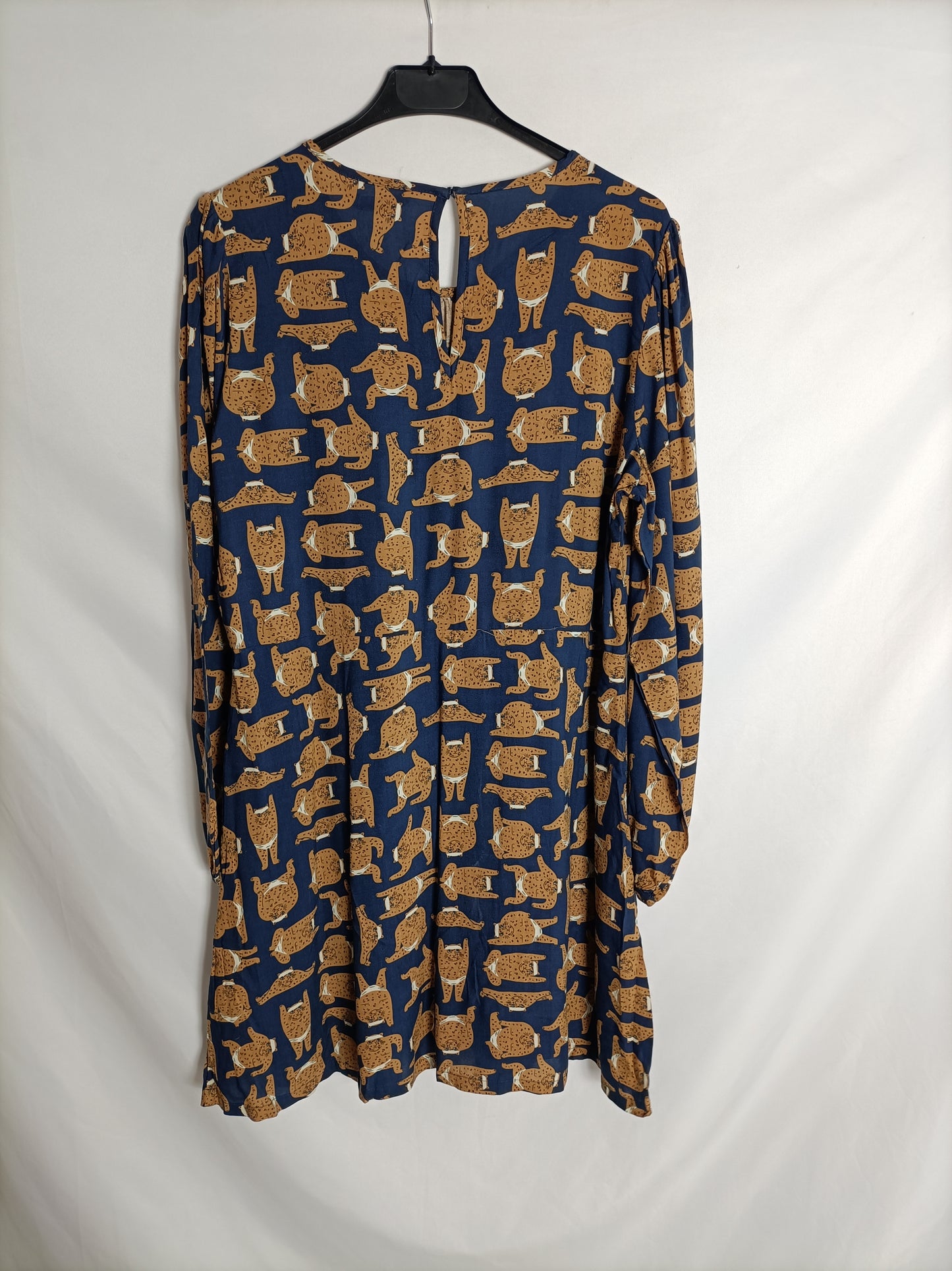 NUEVO CON ETIQUETA. Vestido corto con manga larga y estampado de gatos.