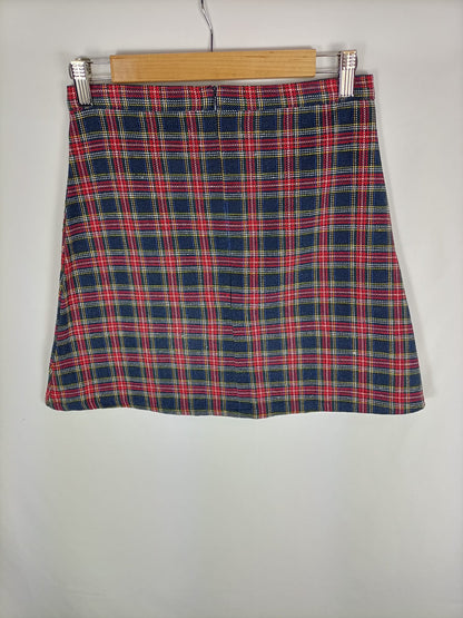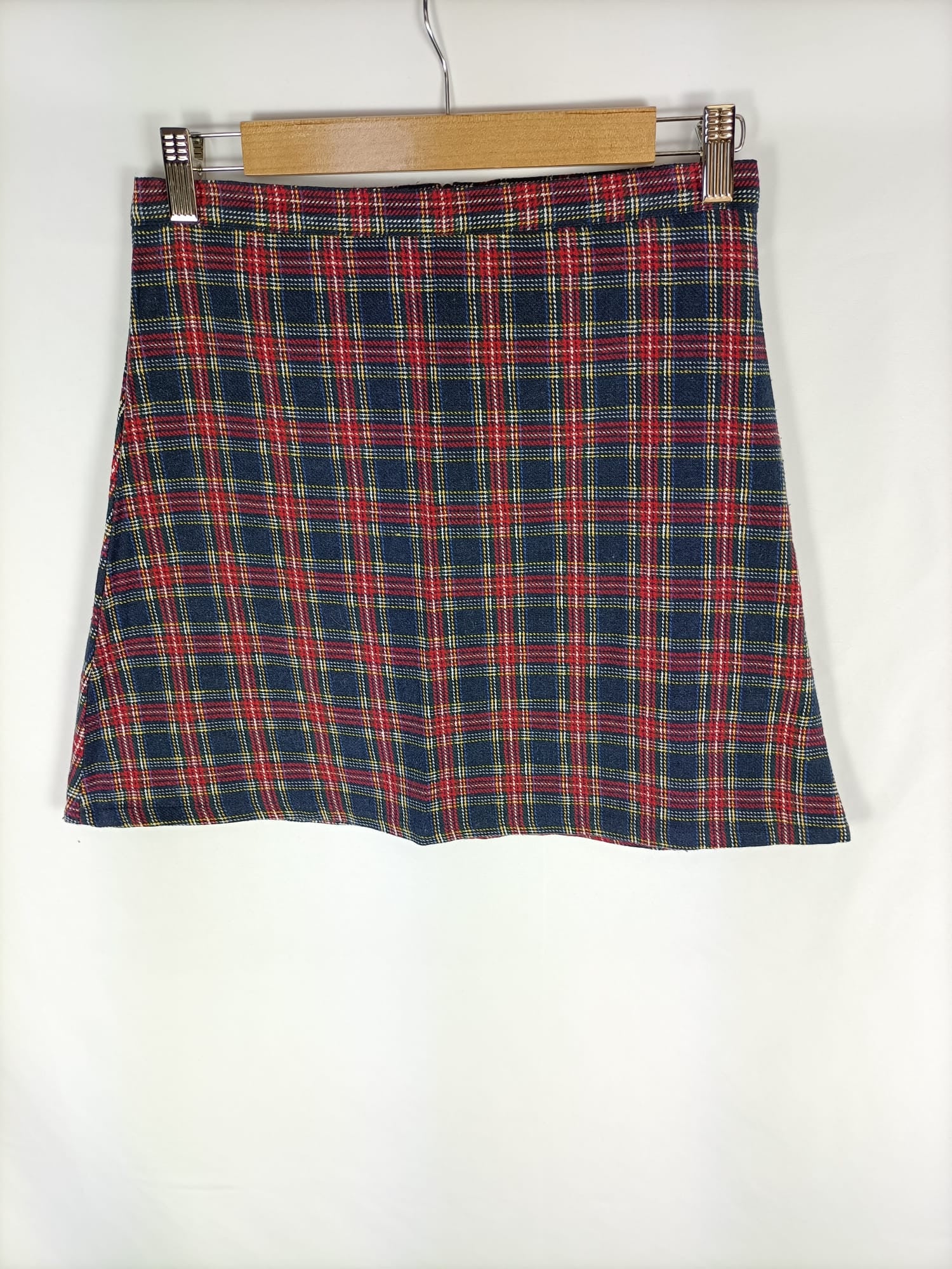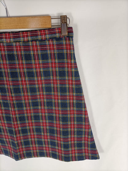 Compañía Fantástica. S. Falda de cuadros escoceses en tono azul y rojo. No elástica. Cintura 36 cm largo 43 cm
