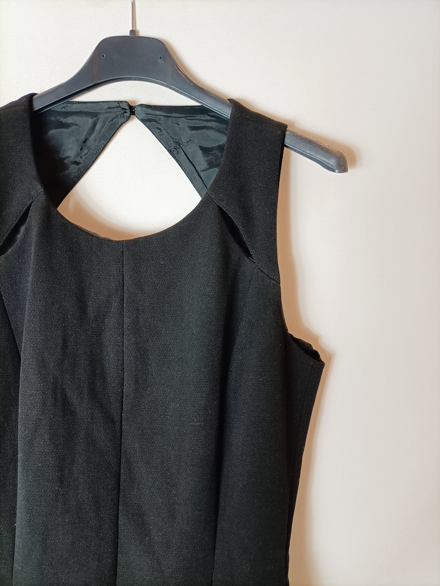 Vestido negro pinzas apertura espalda. Tejido non elástico