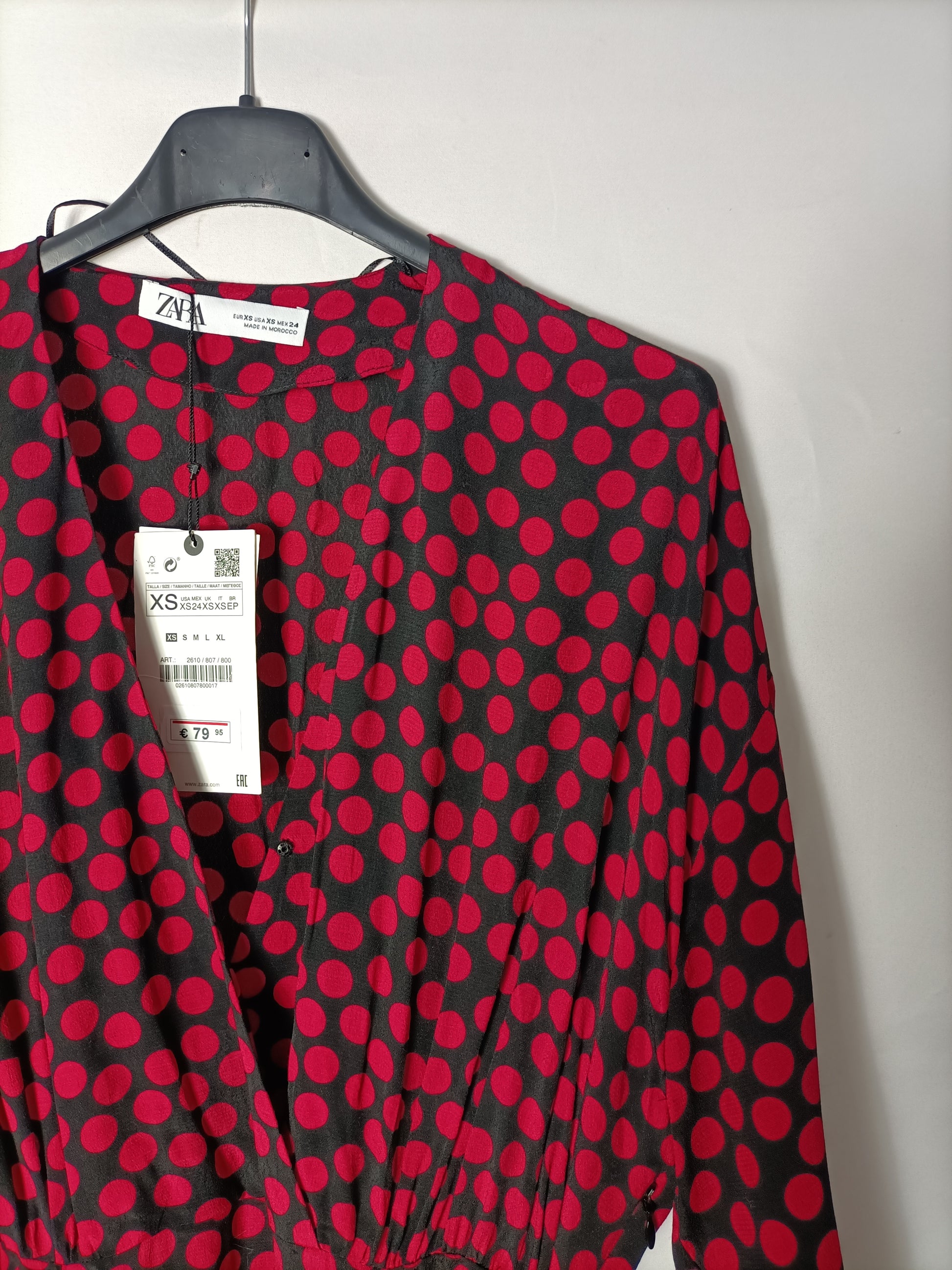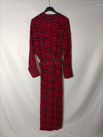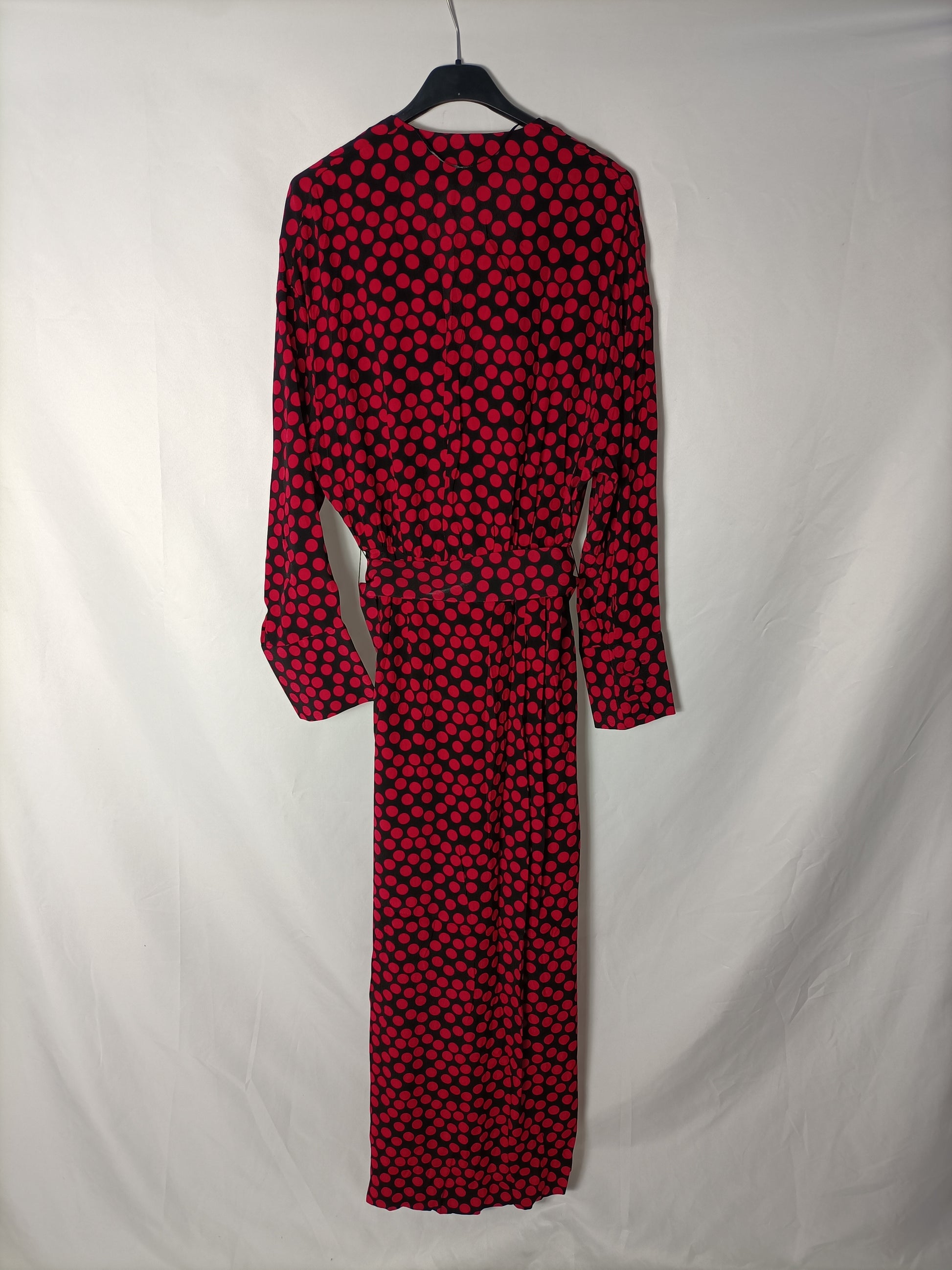 ZARA. Vestido negro lunares rosas. T XS