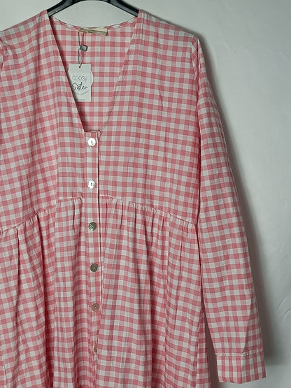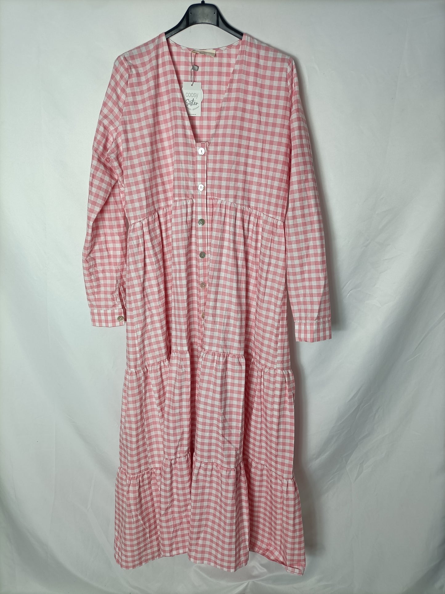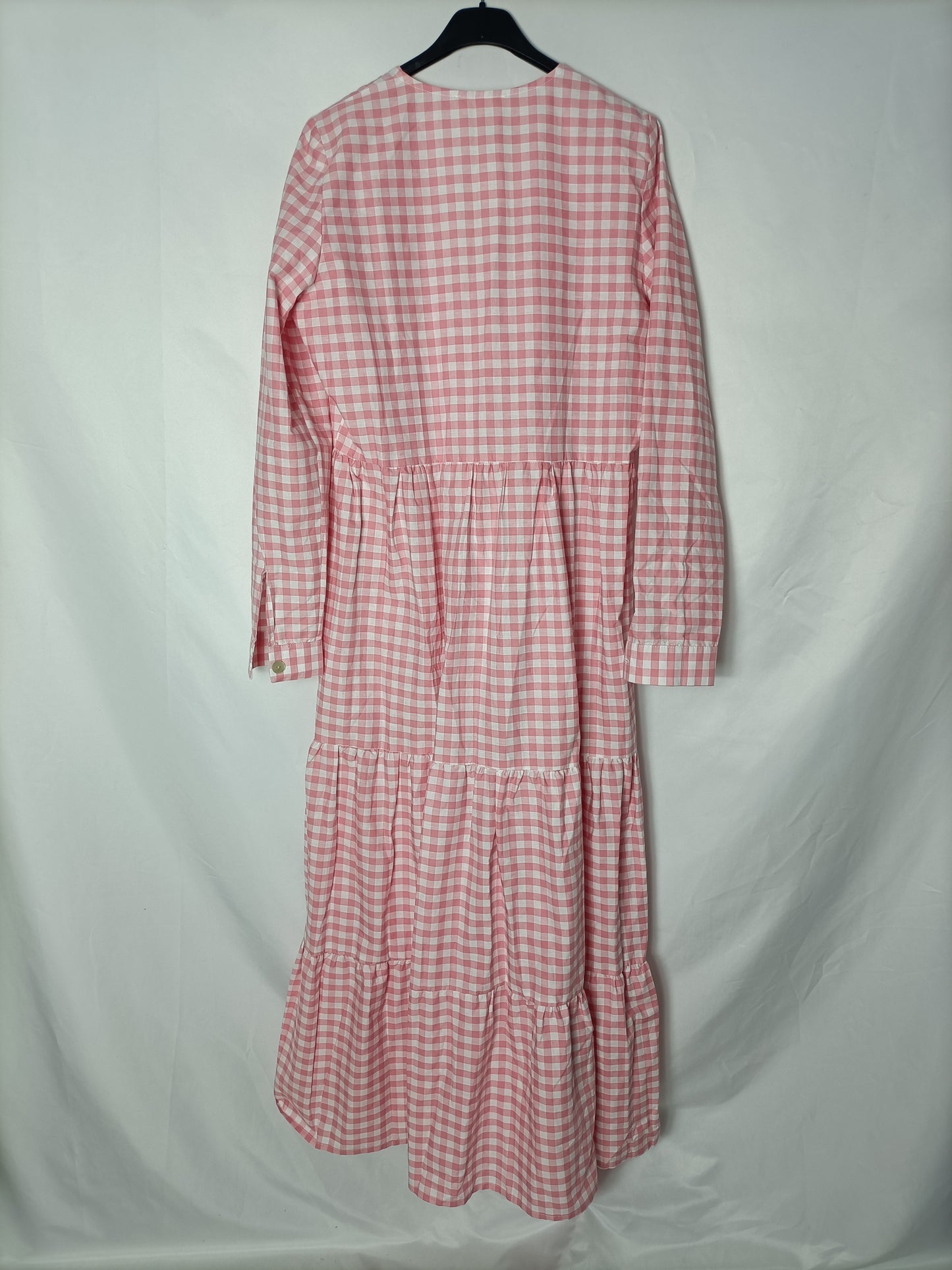 COOSY. Vestido cuadros vichy rosa. TS/M