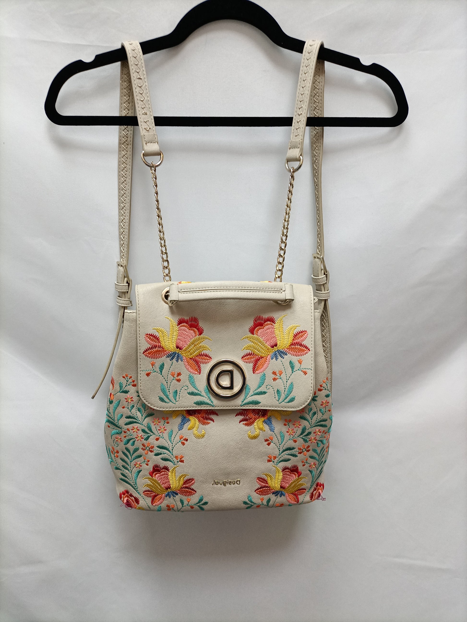 DESIGUAL. Mochila beige bordada