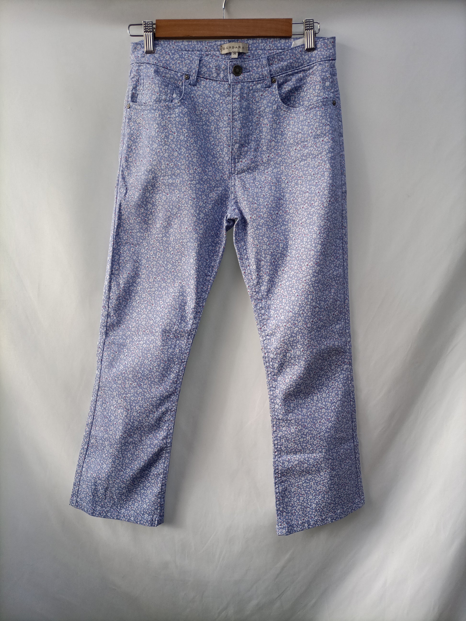 Pantalón largo lila con flores de tejido vaquero. Cintura 36 cm Largo 90 cm