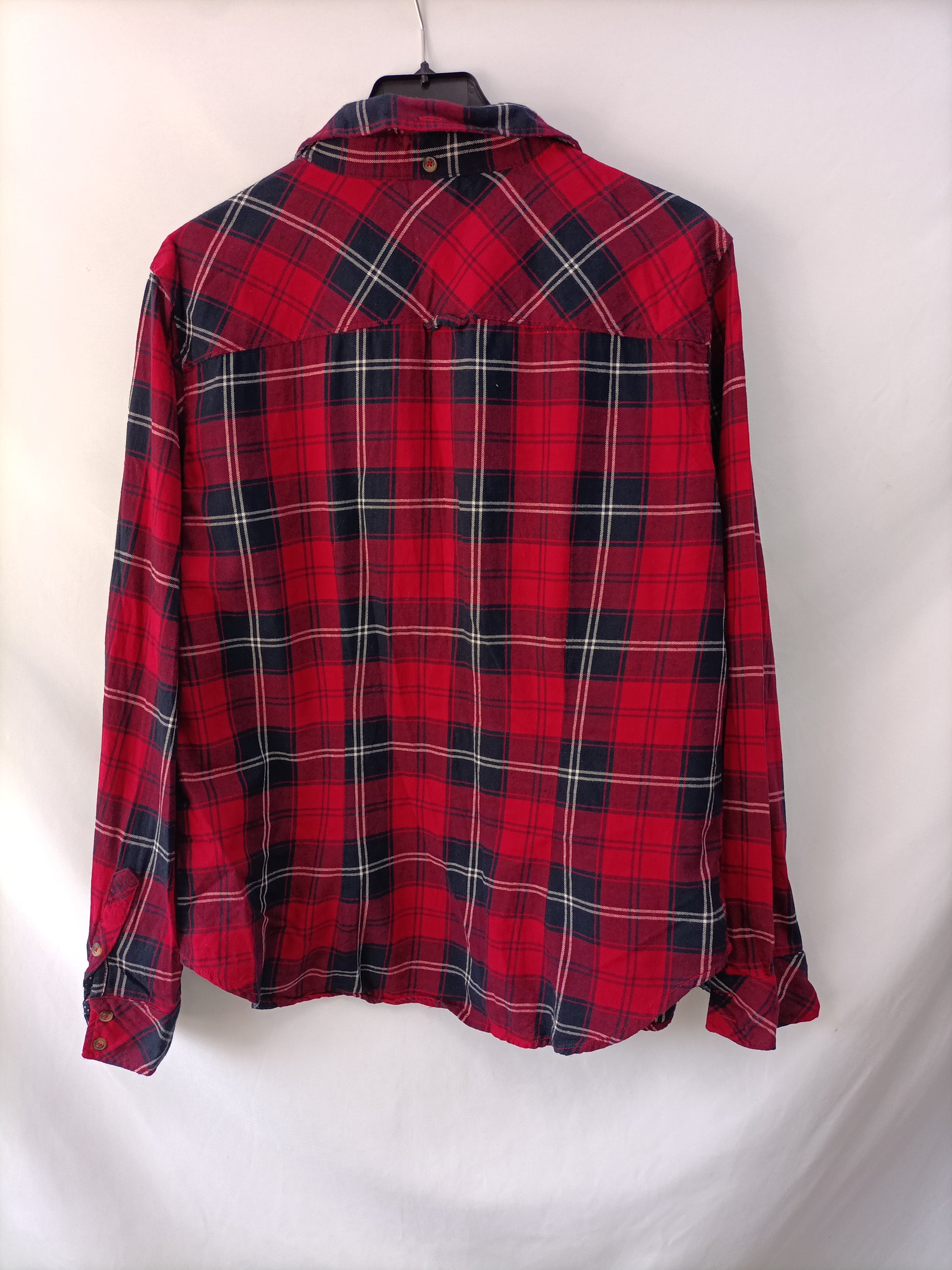 Camisa de cuadros estilo leñador en azul y rojo. No elástica. De sisa a sisa 53 cm largo 62 cm
