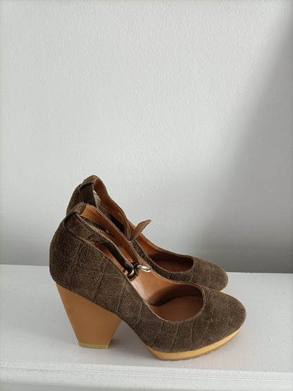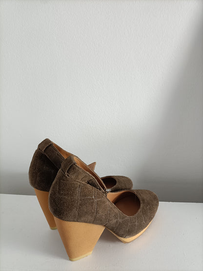 ADOLFO DOMINGUEZ. Zapatos piel marrón T.38 (tara)