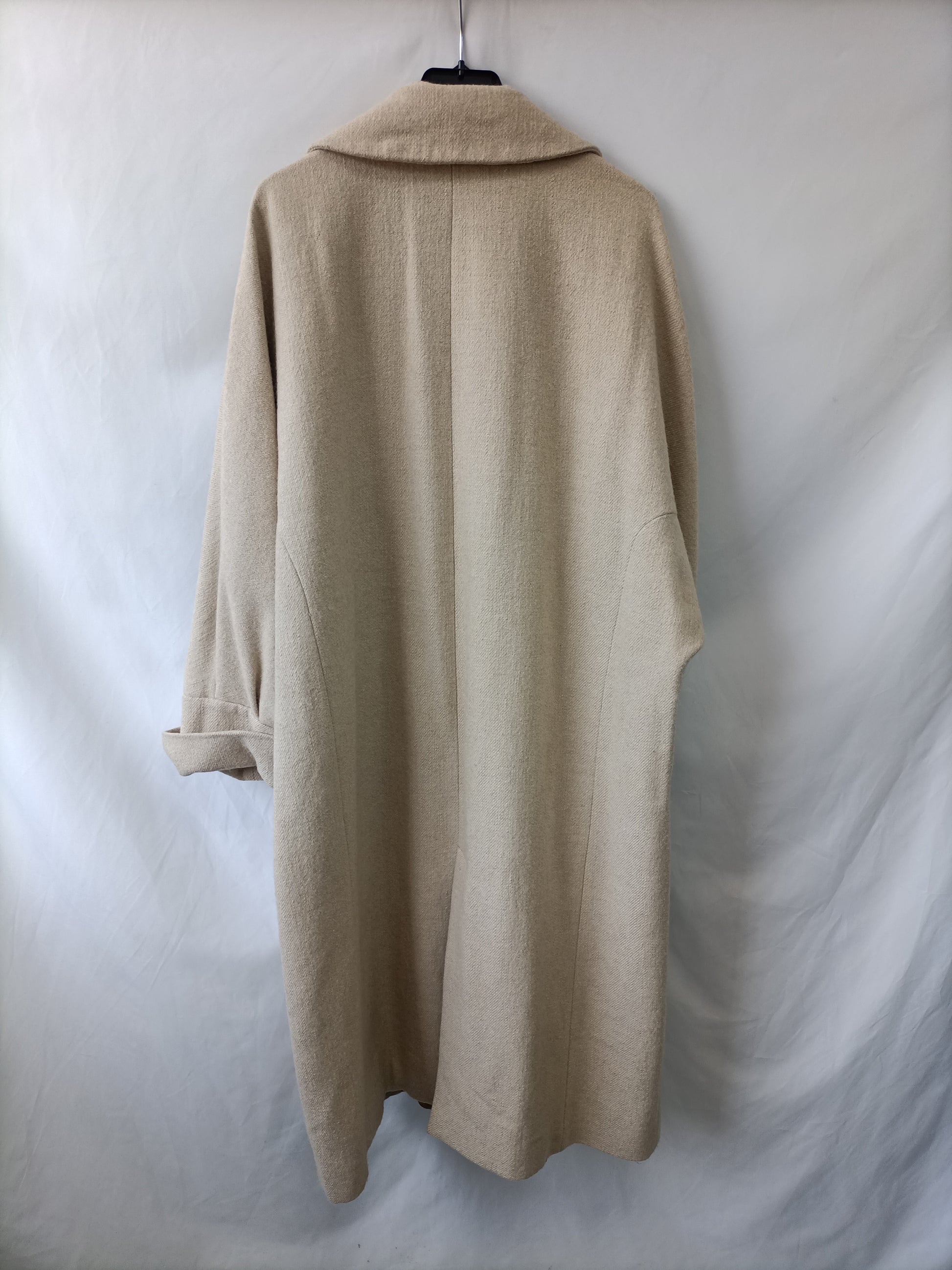 Abrigo Largo de paño beige fluido. Msngas anchas. No elástico. De sisa a sisa 60 cm largo 118 cm