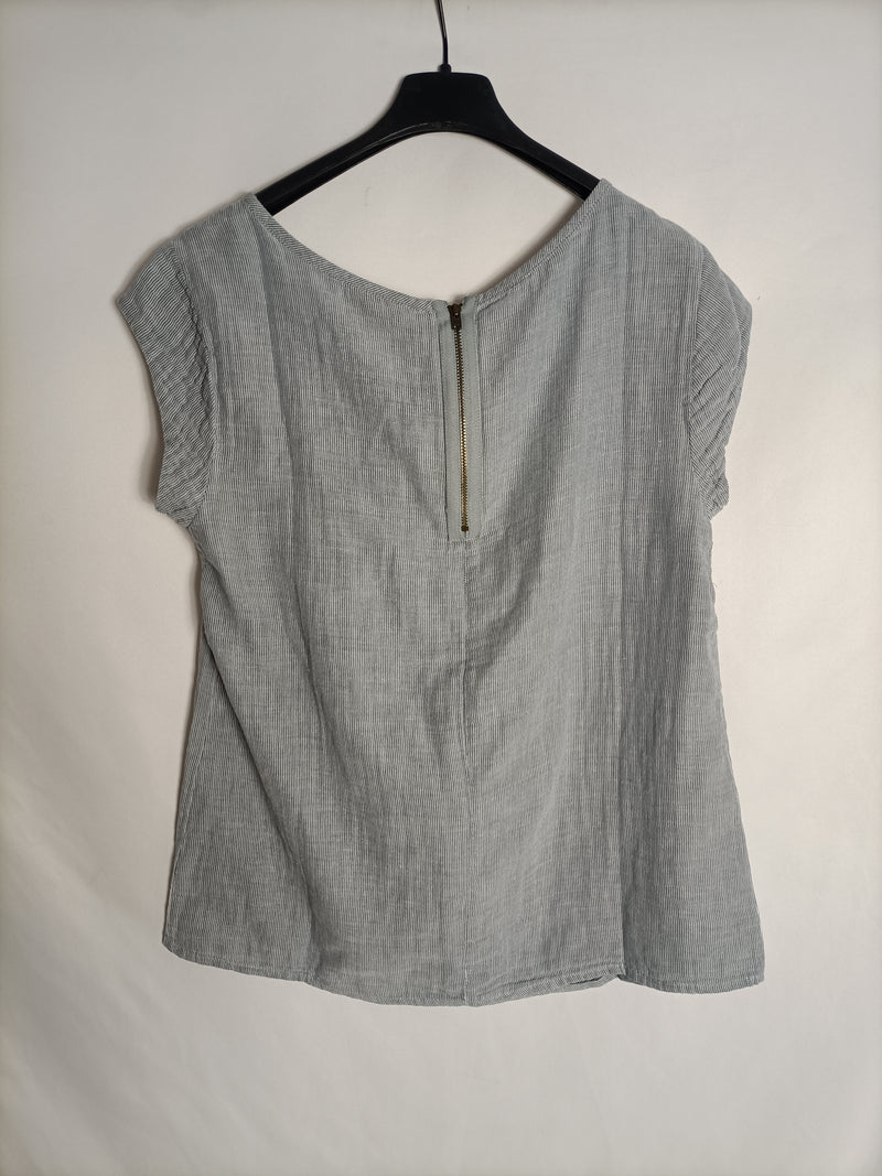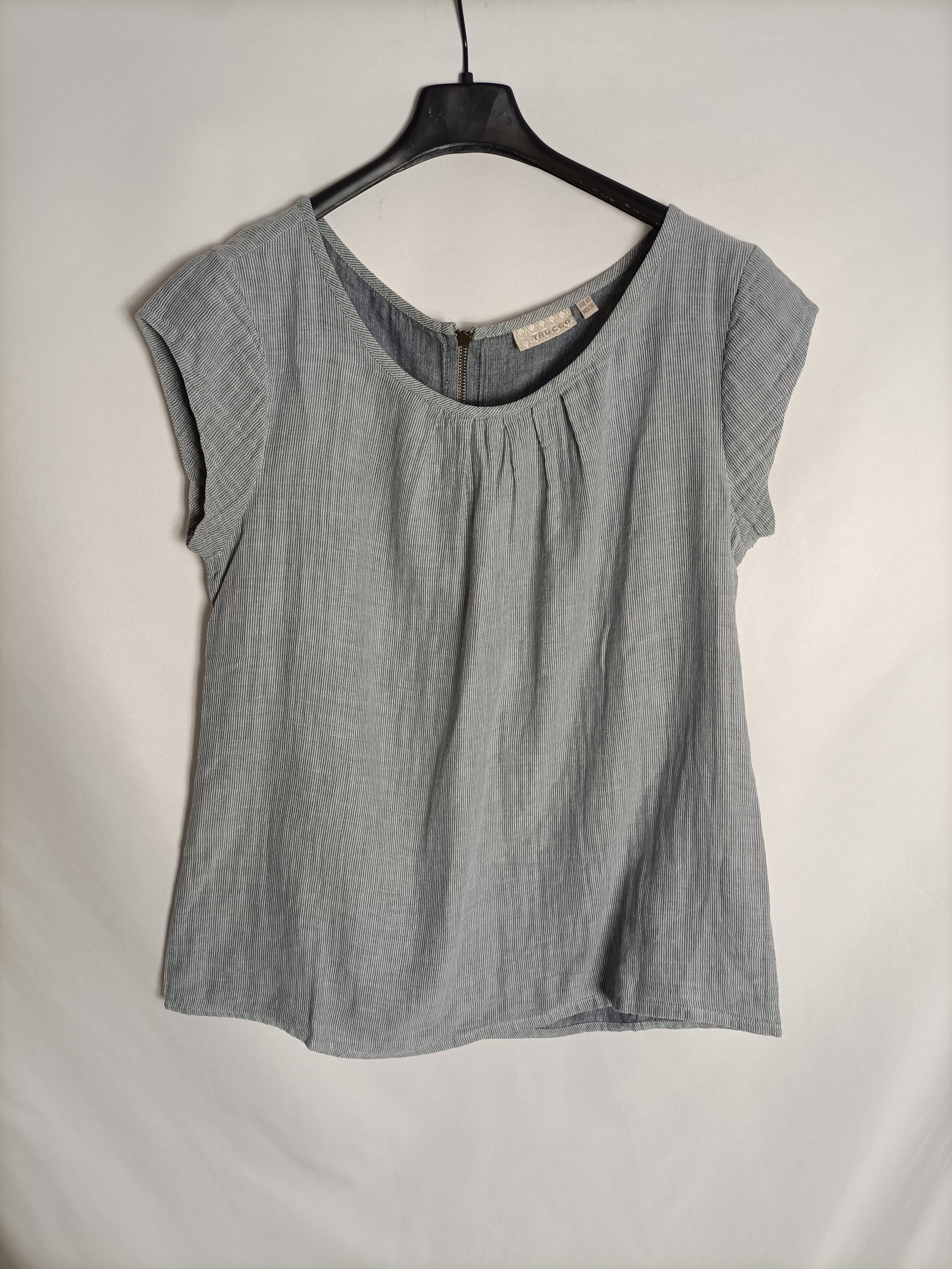 Blusa de rayas muy finitas azul y blanco. Fluida