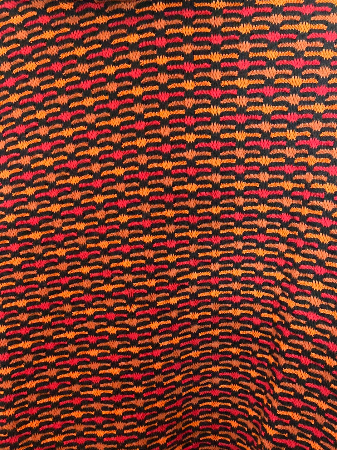 Jersey en tonos rojos cuello vuelto con textura y estampado
