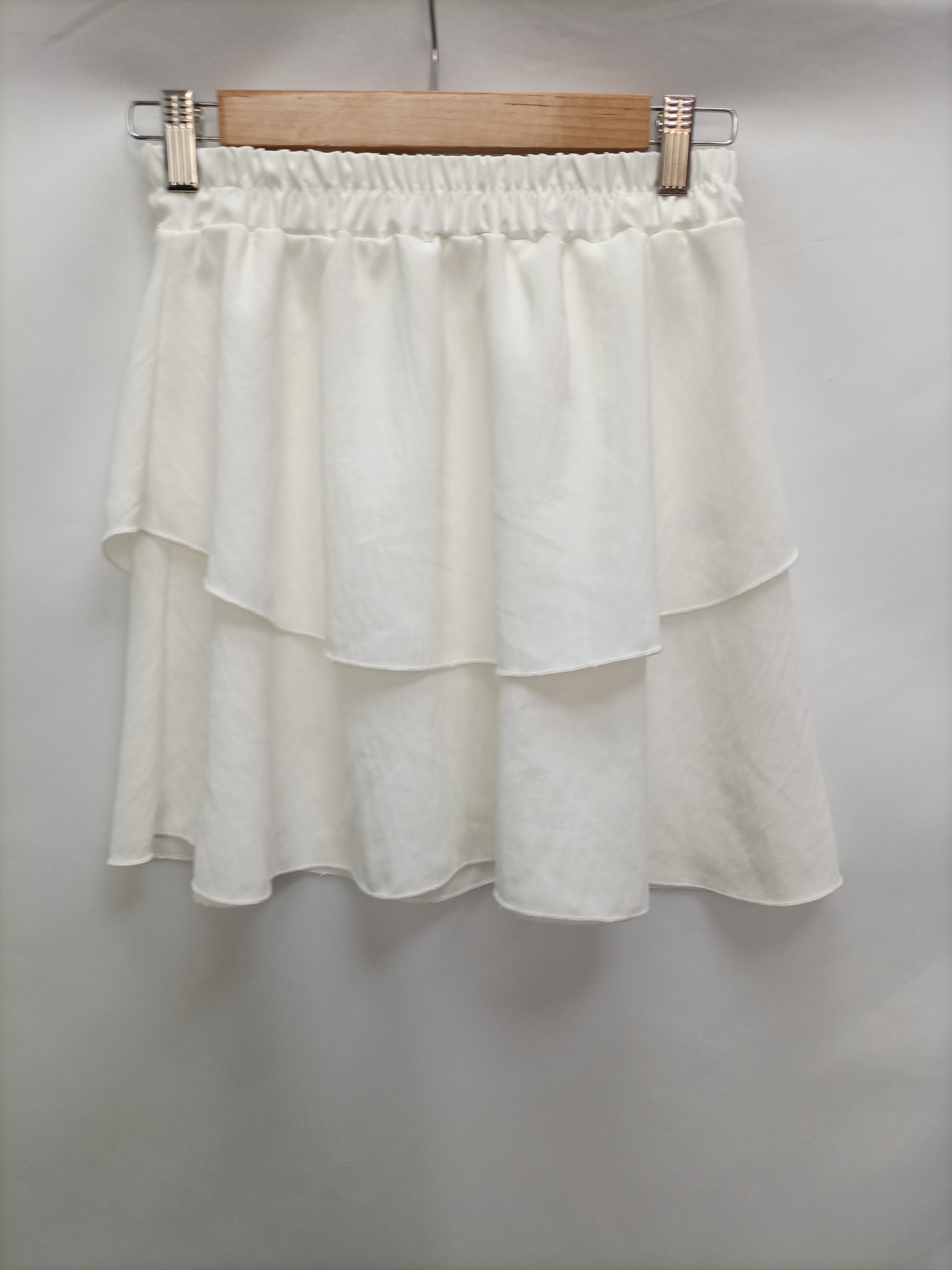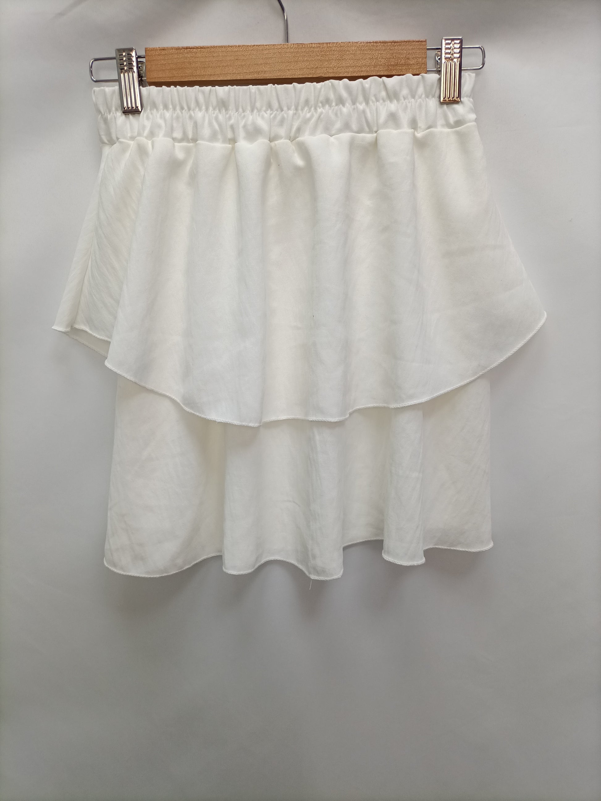 Falda corta con volantes.Fluida con la cintura elástica. largo 42 cm