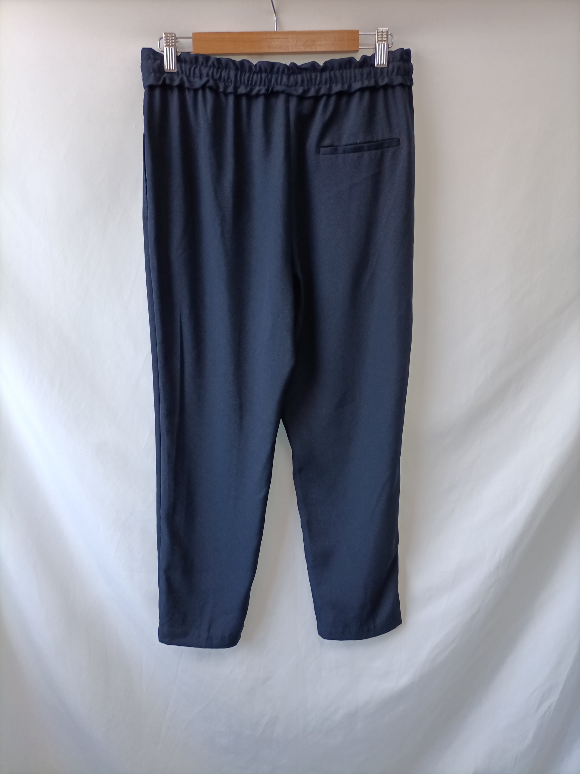 Pantalón fluid azul finito. Cintura elástica ajustable. largo 93 cm