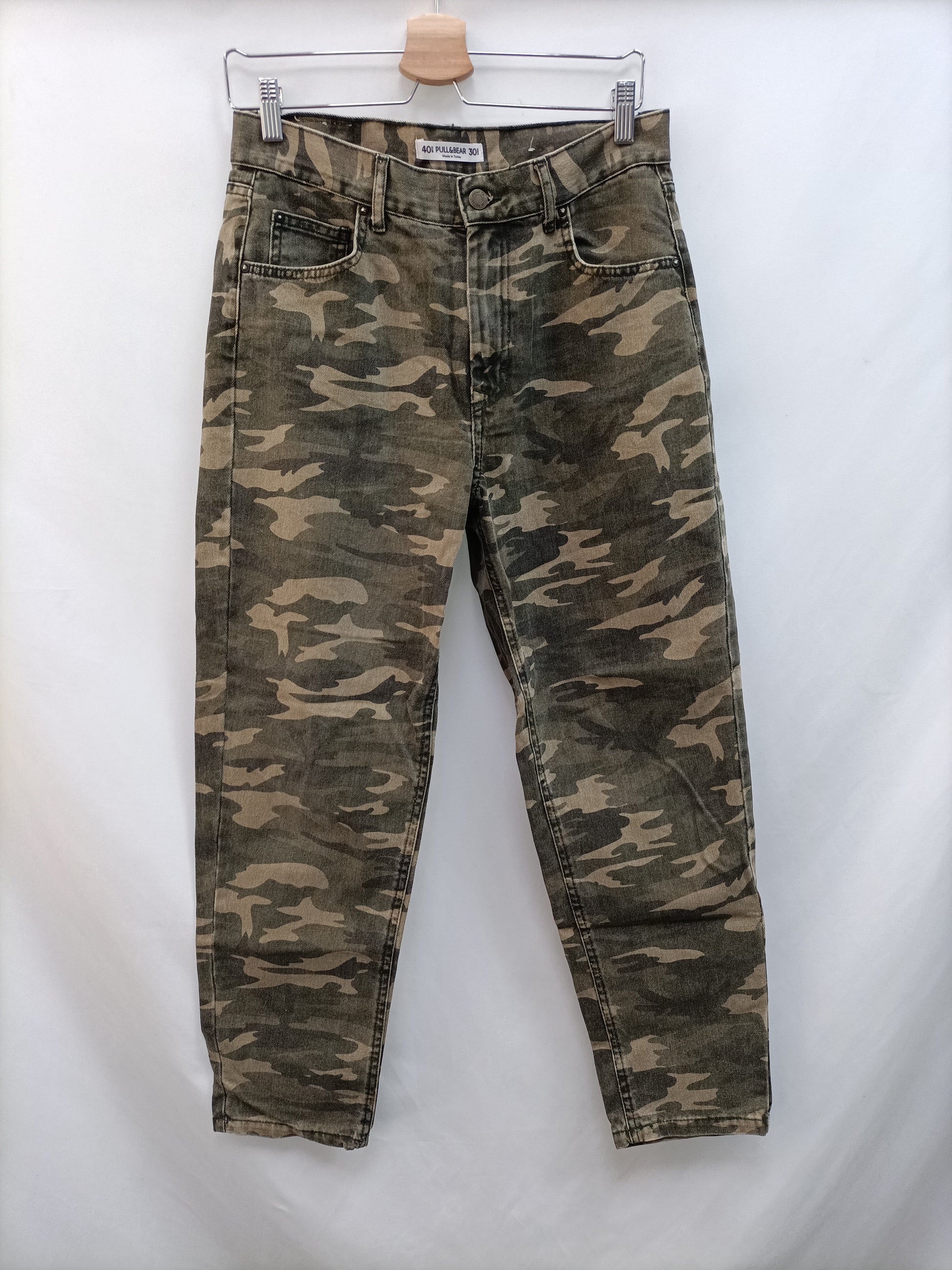 PULL&BEAR. Pantalón denim camuflaje T.40