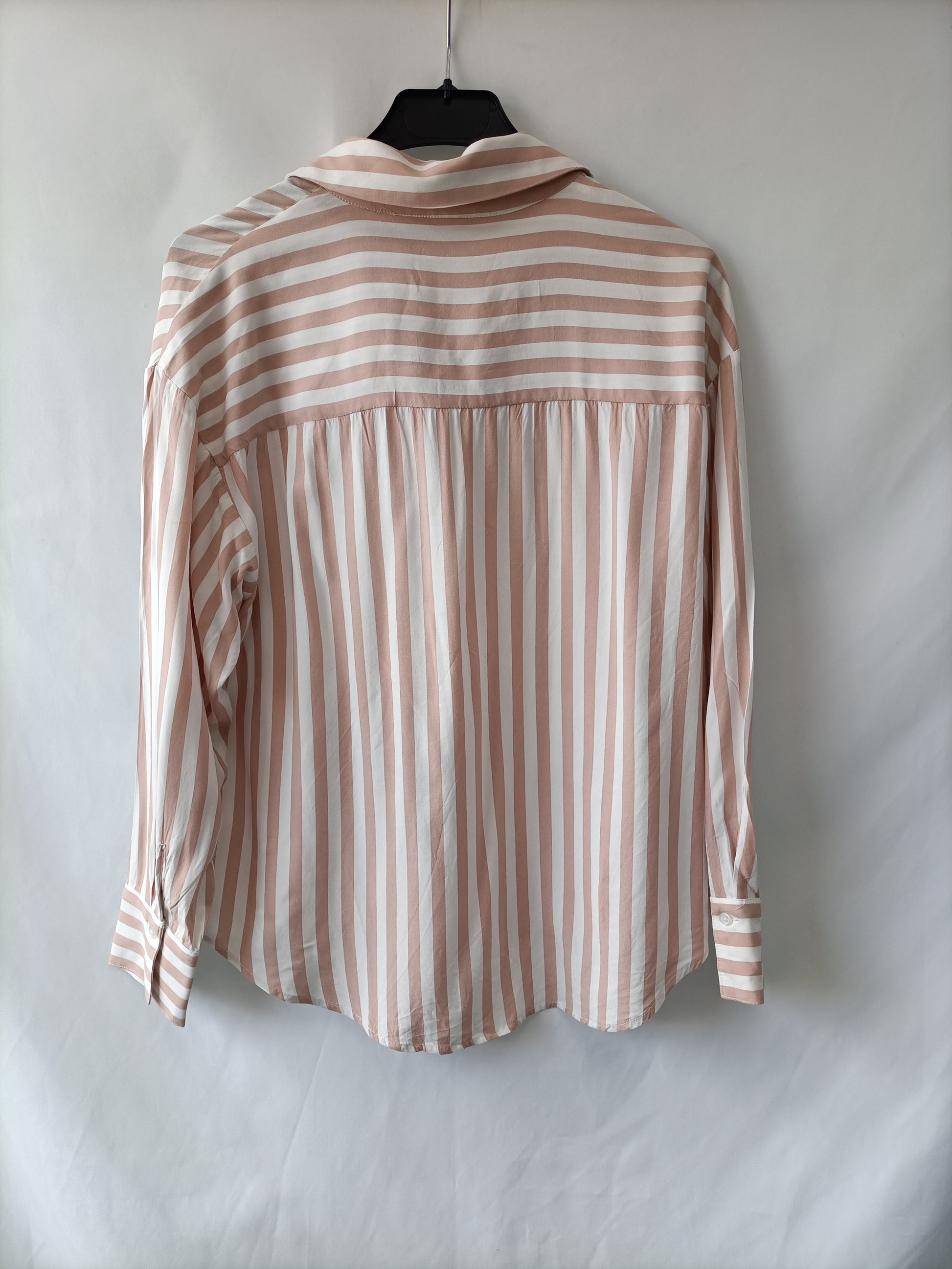 Blusa fluida de rayas blancas y rosa nude. Fluida y abotonada. No elástica. De sisa a sisa 48 cm largo 66 cm