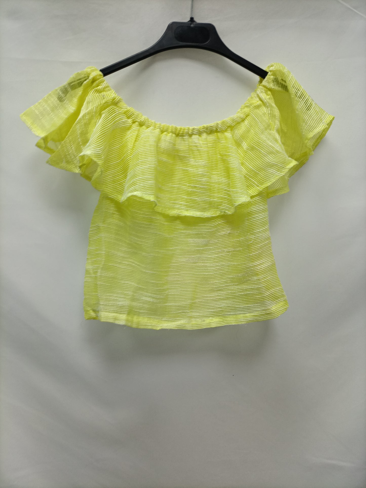 Top de rayas amarillo y blanco con escote barco y volante. No elástico. De sisa a sisa 42 cm Largo 30 cm.