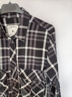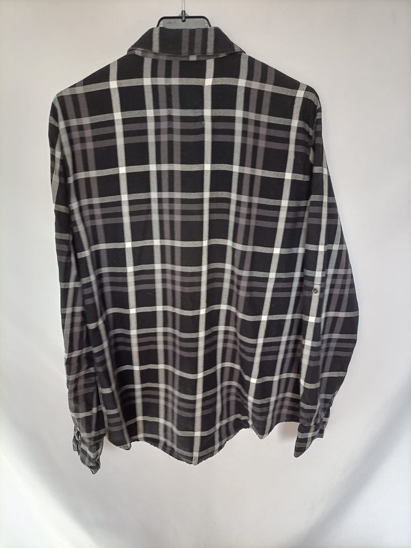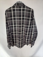 Zara. M. Camisa de cuadros blanca y negra con botones de Clip. No elástica. De sisa a sisa 47 cm largo 76 cm