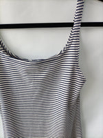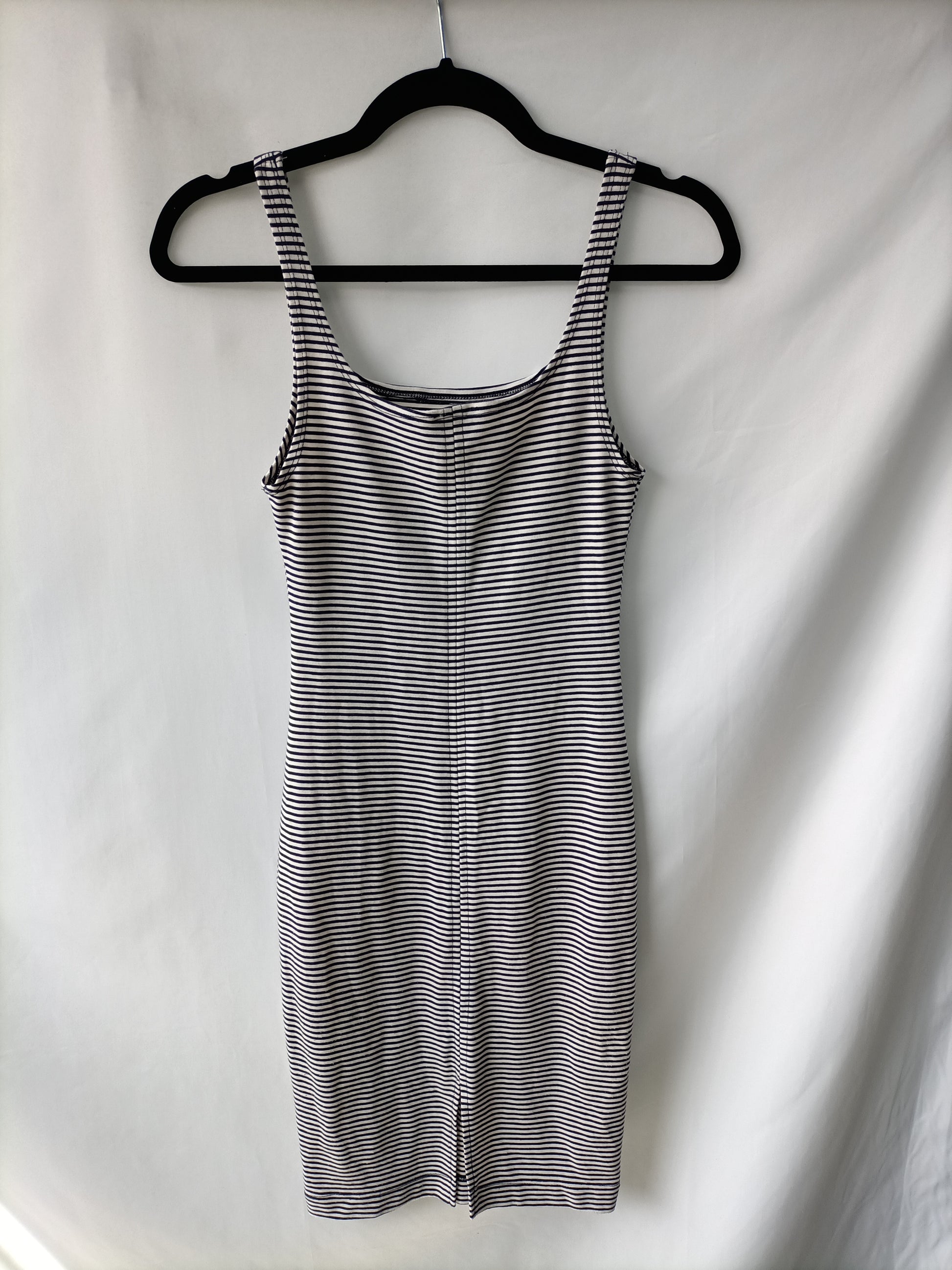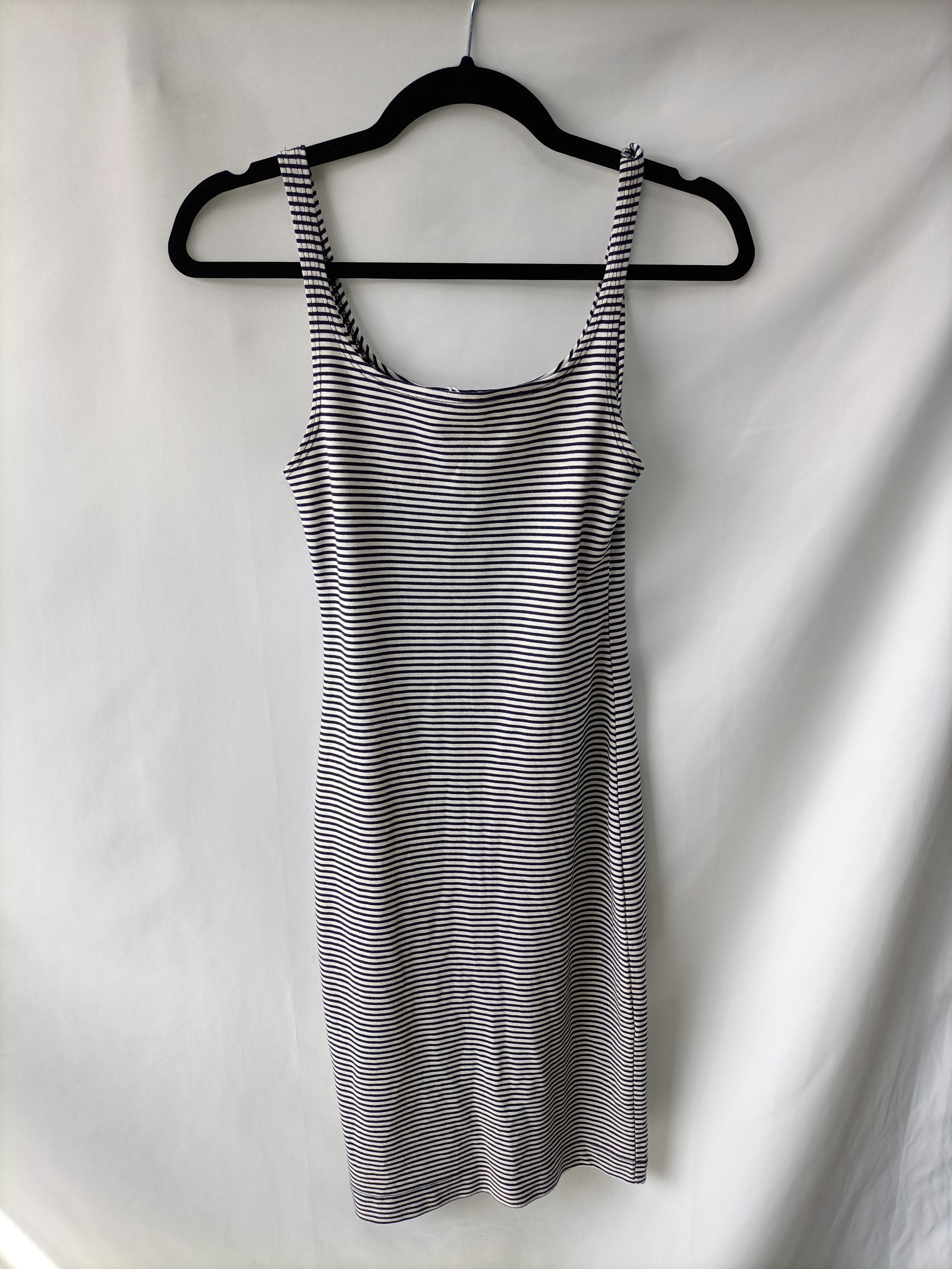 Vestido corto ajustado de de rayas marineras. Elasticou. Largo 93 cm