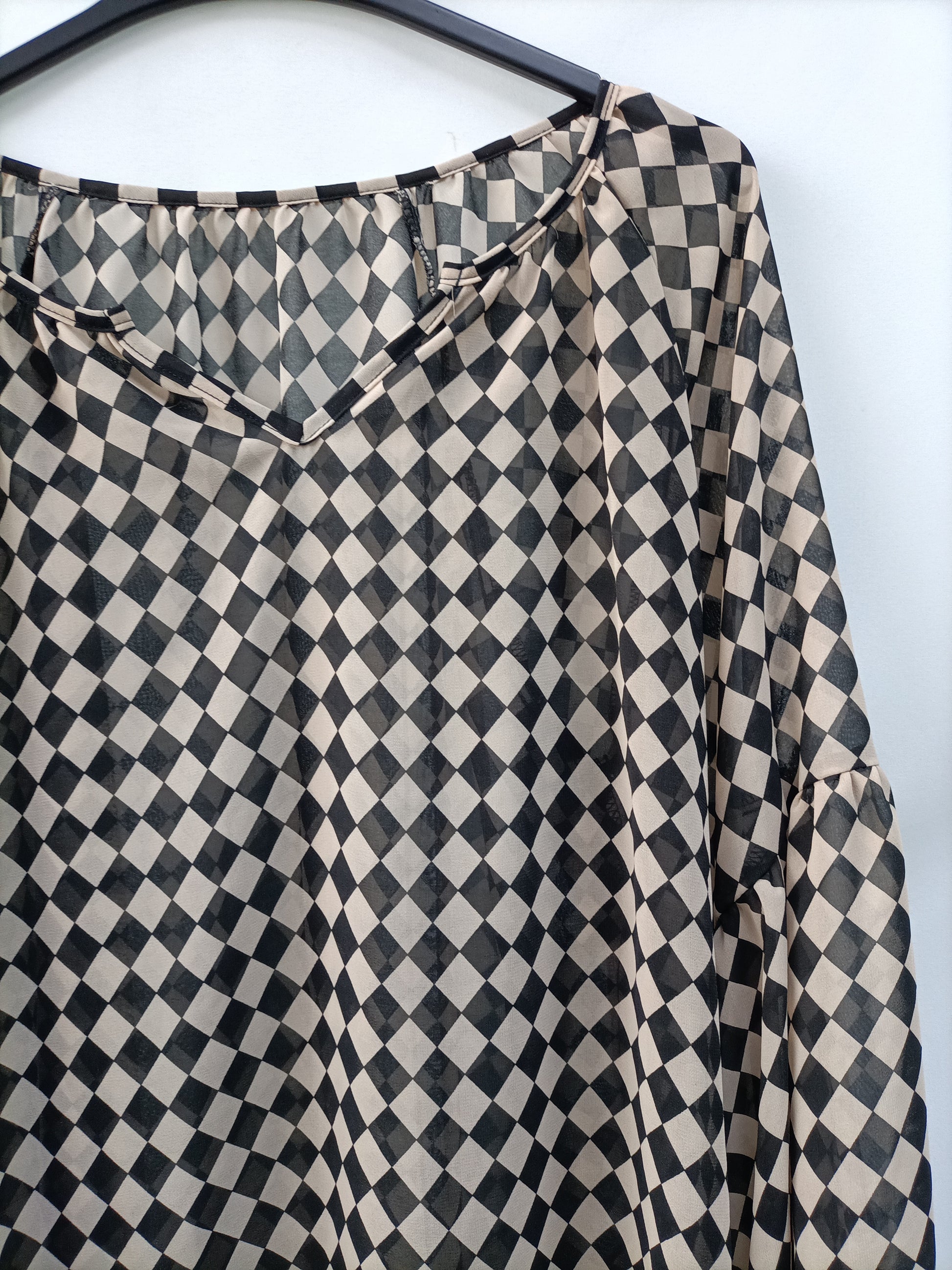 OTRAS. Blusa semitransparente cuadros T.u(s)