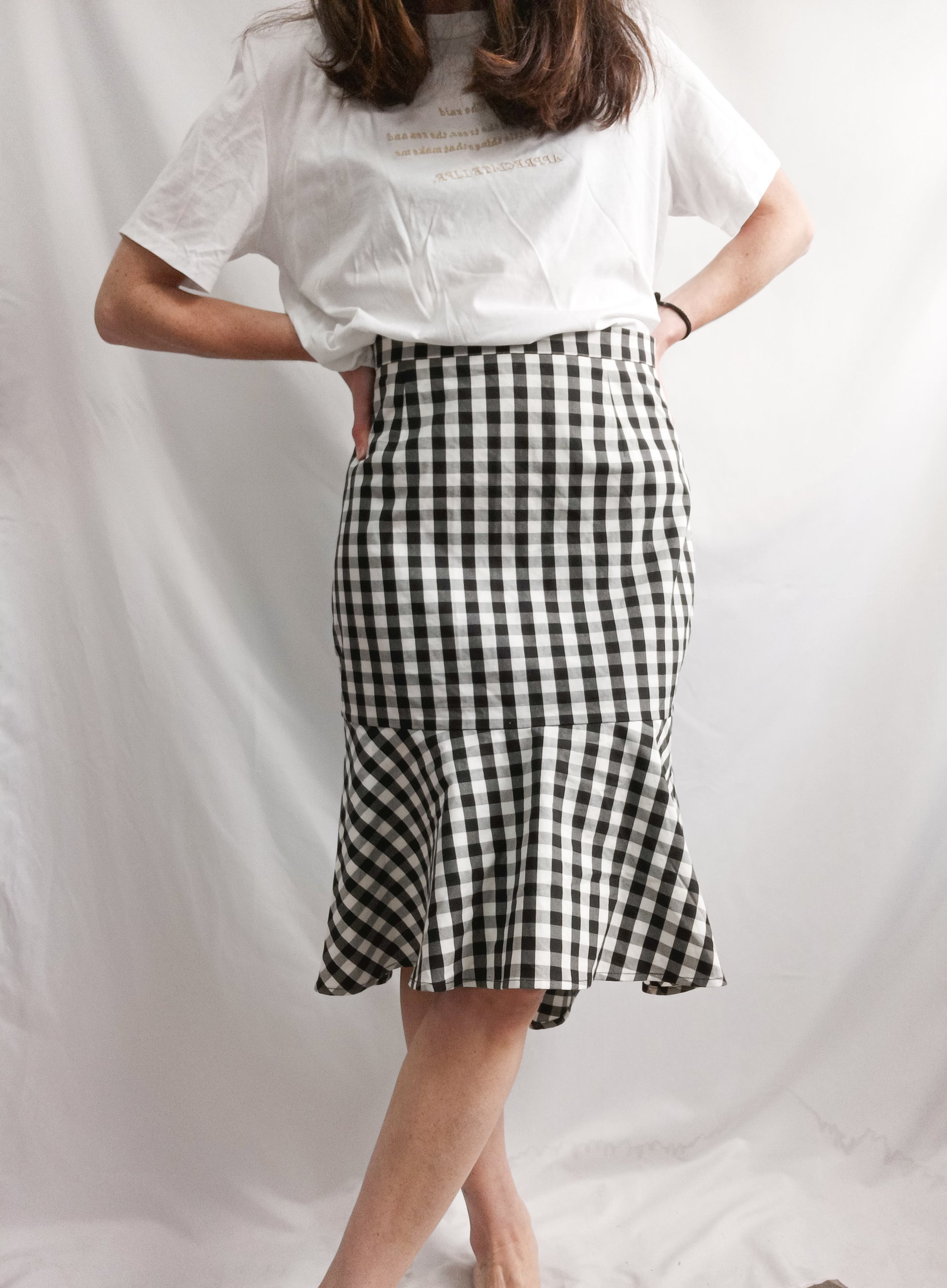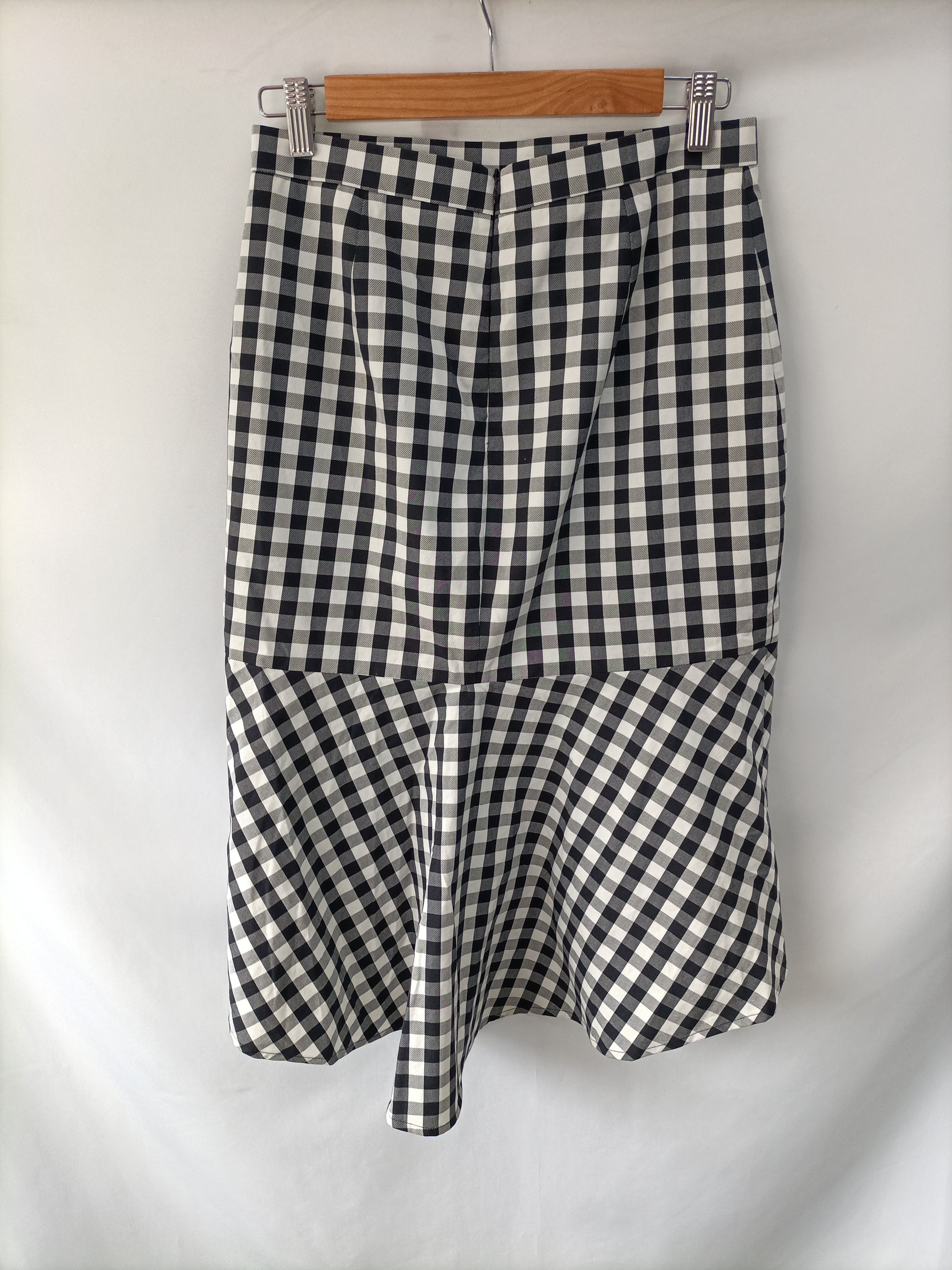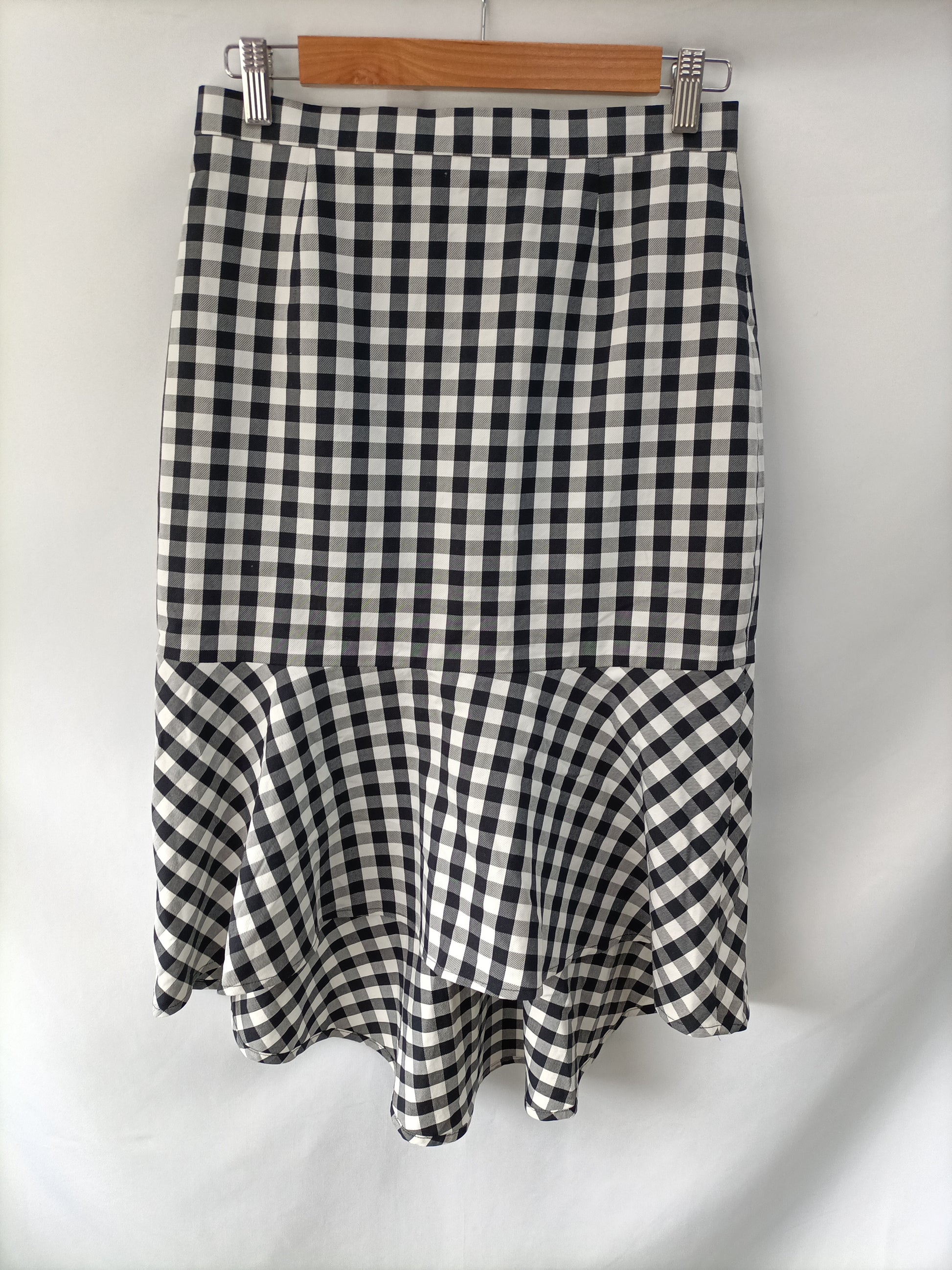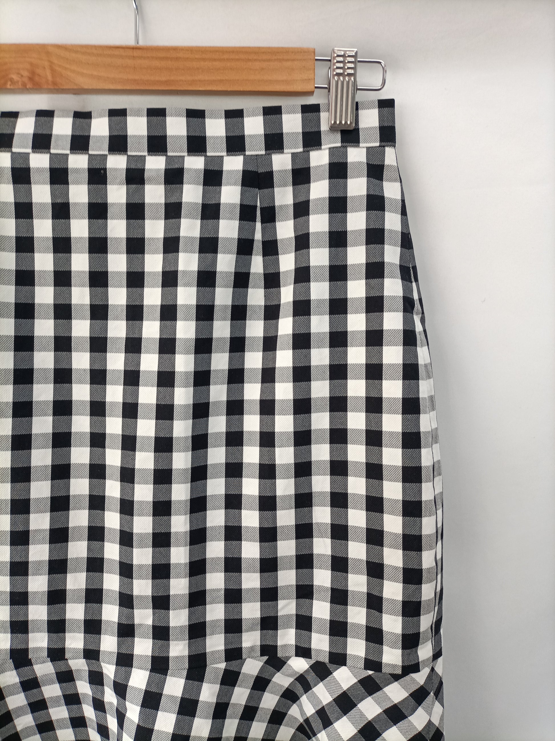 Falda midi de cuadros vichy con volante en la parte de abajo. No elástica. Cintura 36 cm largo 66 cm