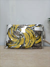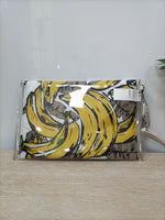 NUEVO CON ETIQUETA. Cartera de mano transparente con Interior de neopreno con estamos de bananas extraíble. 17X26 cm.