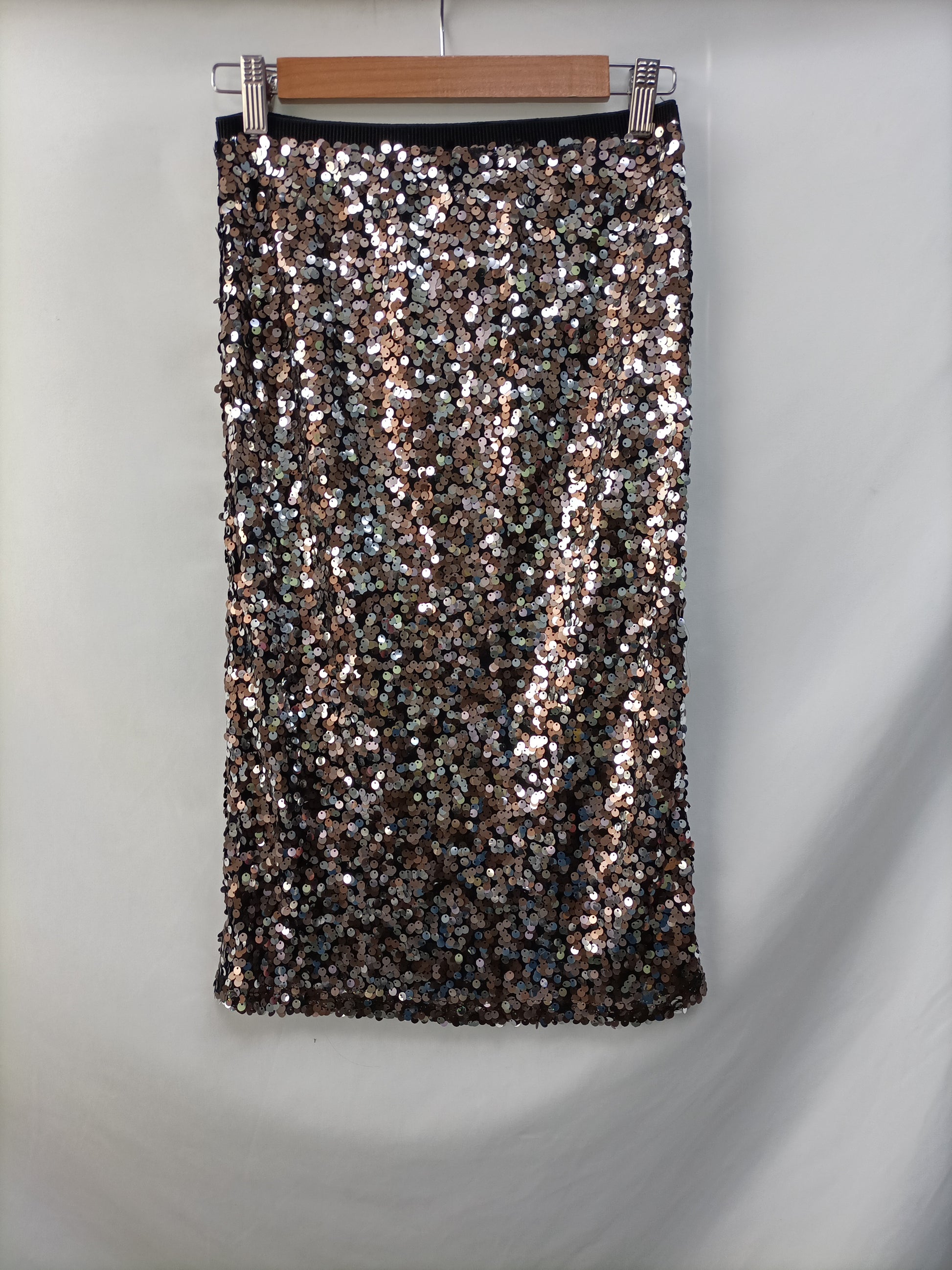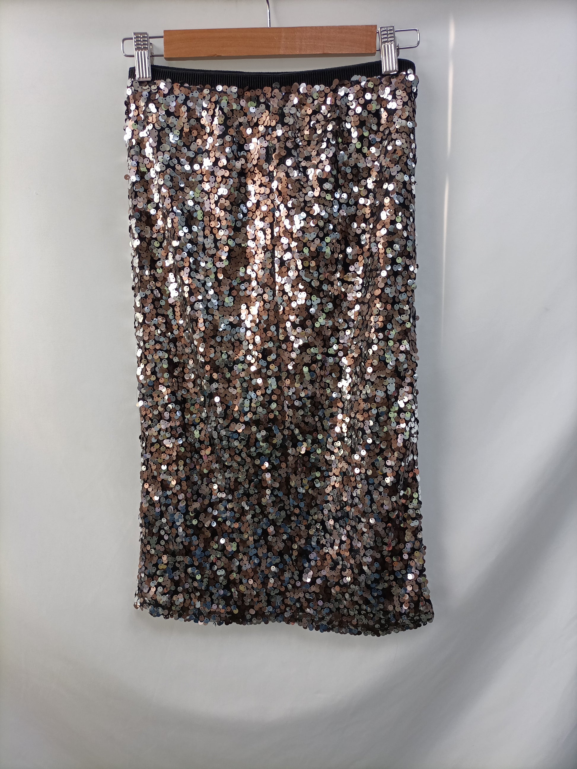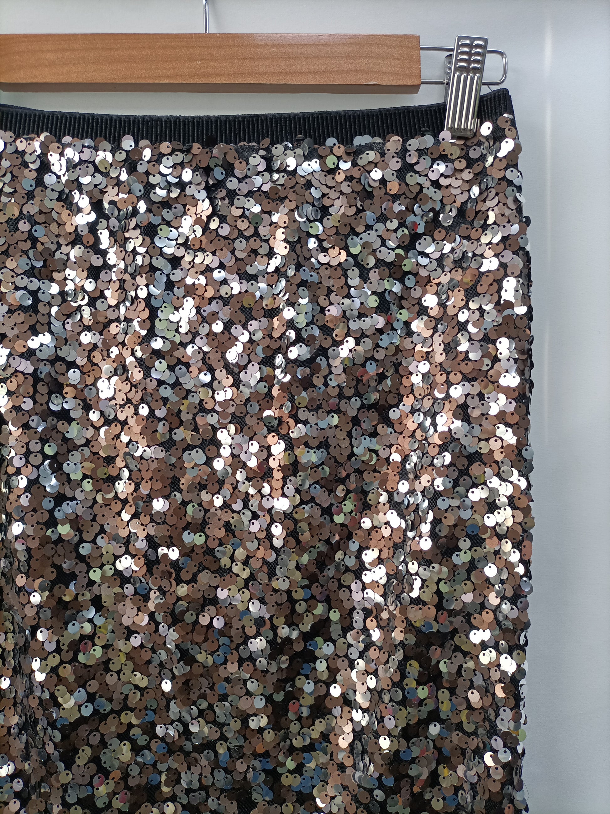 Falda negra con lentejuelas plateadas. Elástica. largo 67 cm