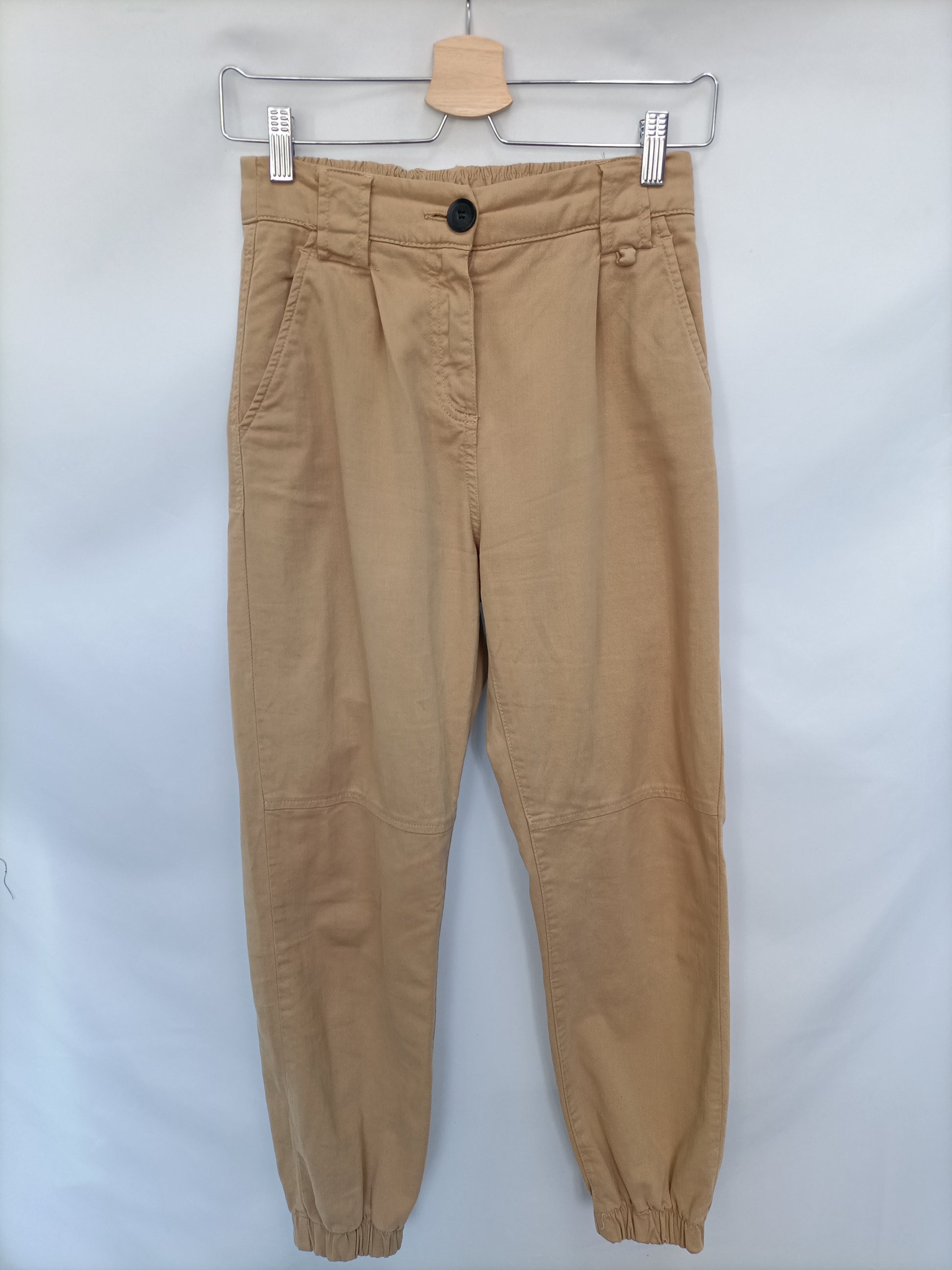 Pantalón camel estilo cargo con elástico en los tobillos. Cintura elástica 34 cm largo 94 cm