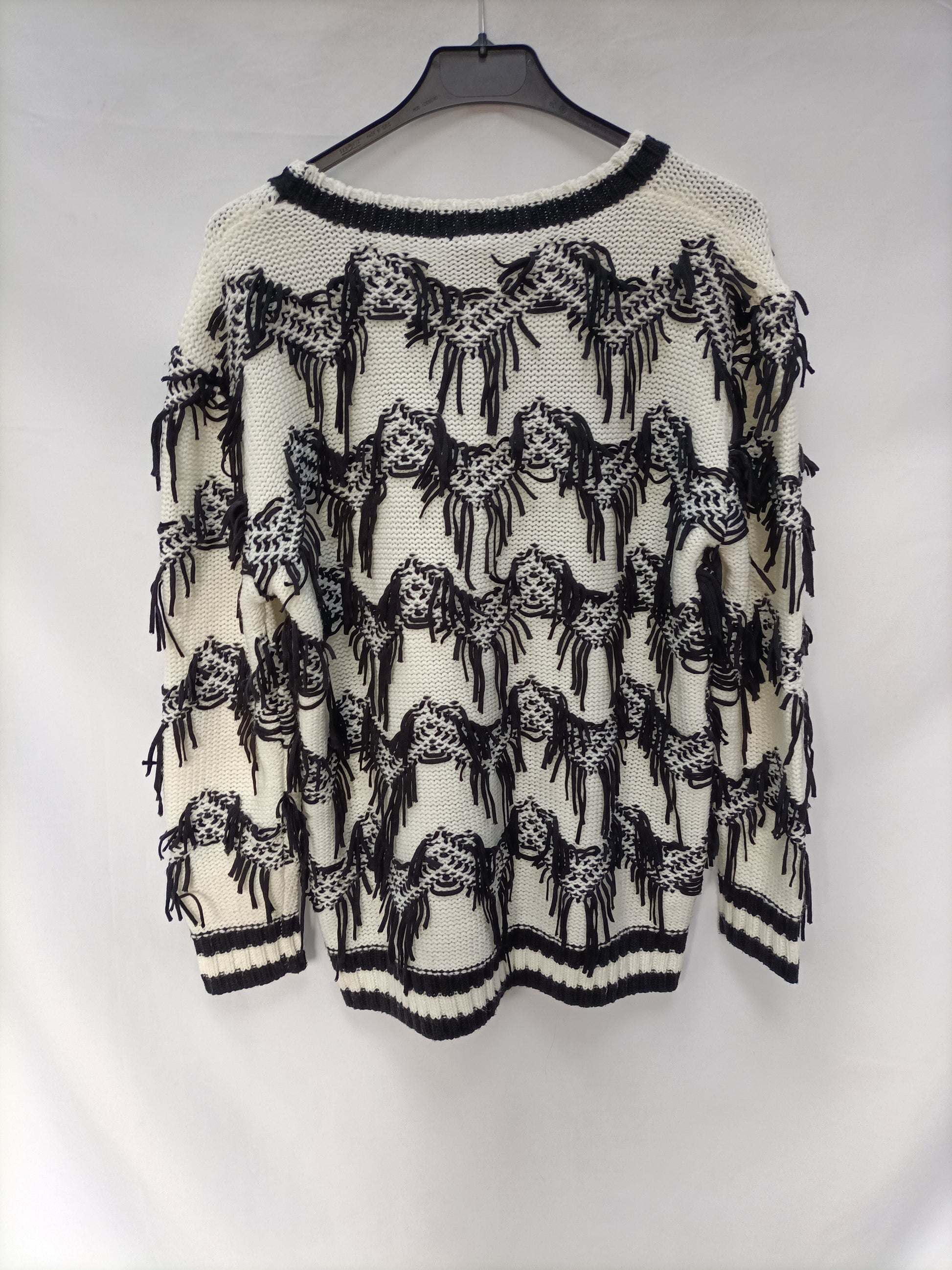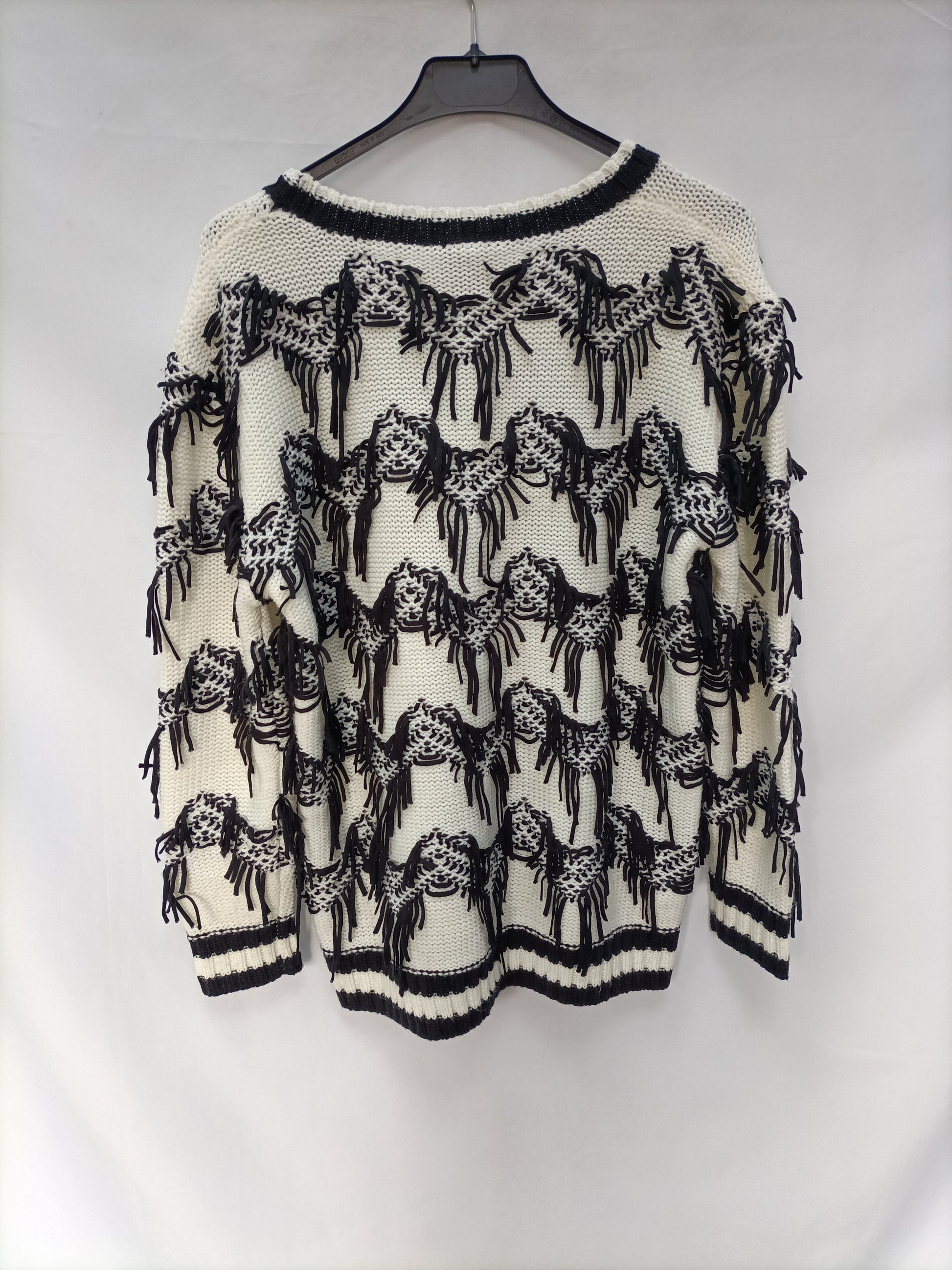 Jersey beige estilo oversized con detalle de flecos. Gordito. Largo 65 cm