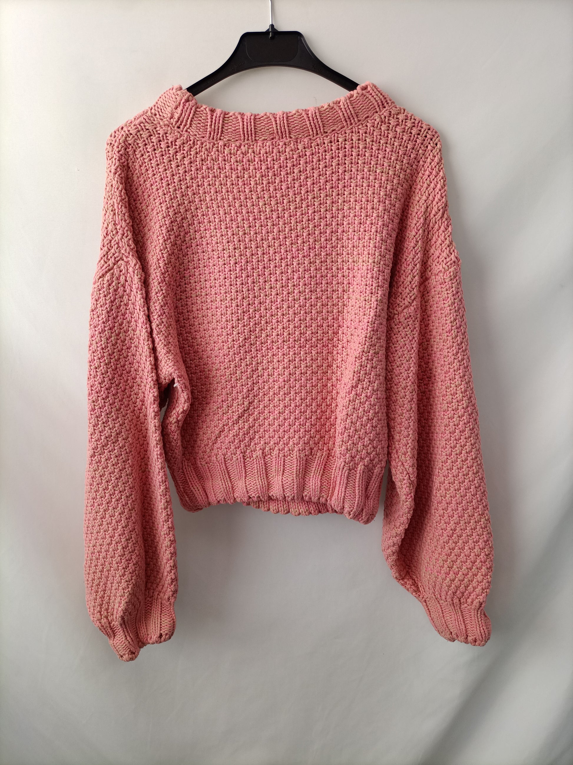 Jersey beige y rosa Jaspeado gordito. Largo 47 cm