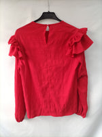 Blusa roja fludia con volantes en los hombros. Fluida y elastica. Largo 61 cm