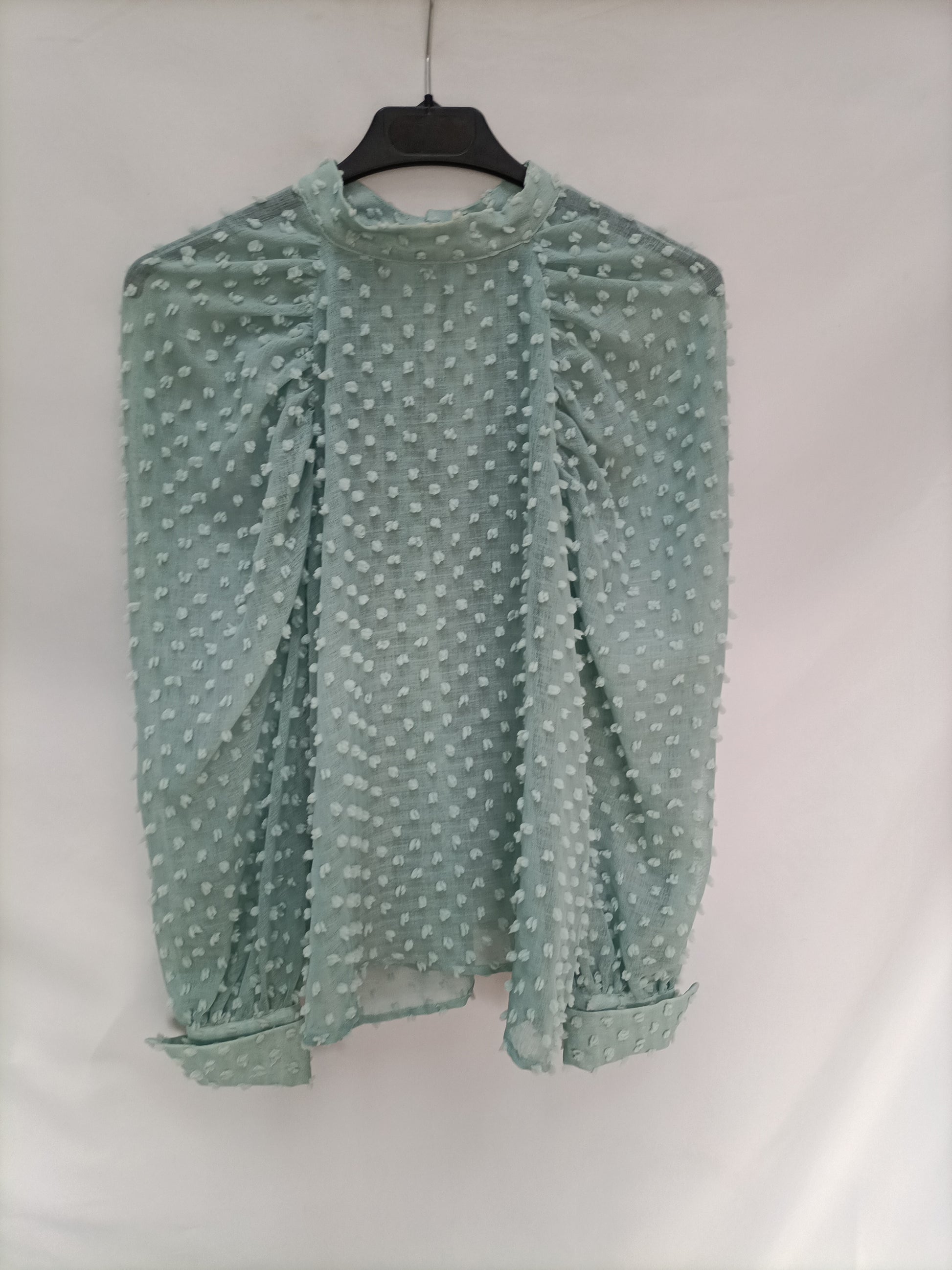 Blusa plumeti con mangas abullonadas,.No elastico. De sisa a sisa 47 cm largo 58 cm