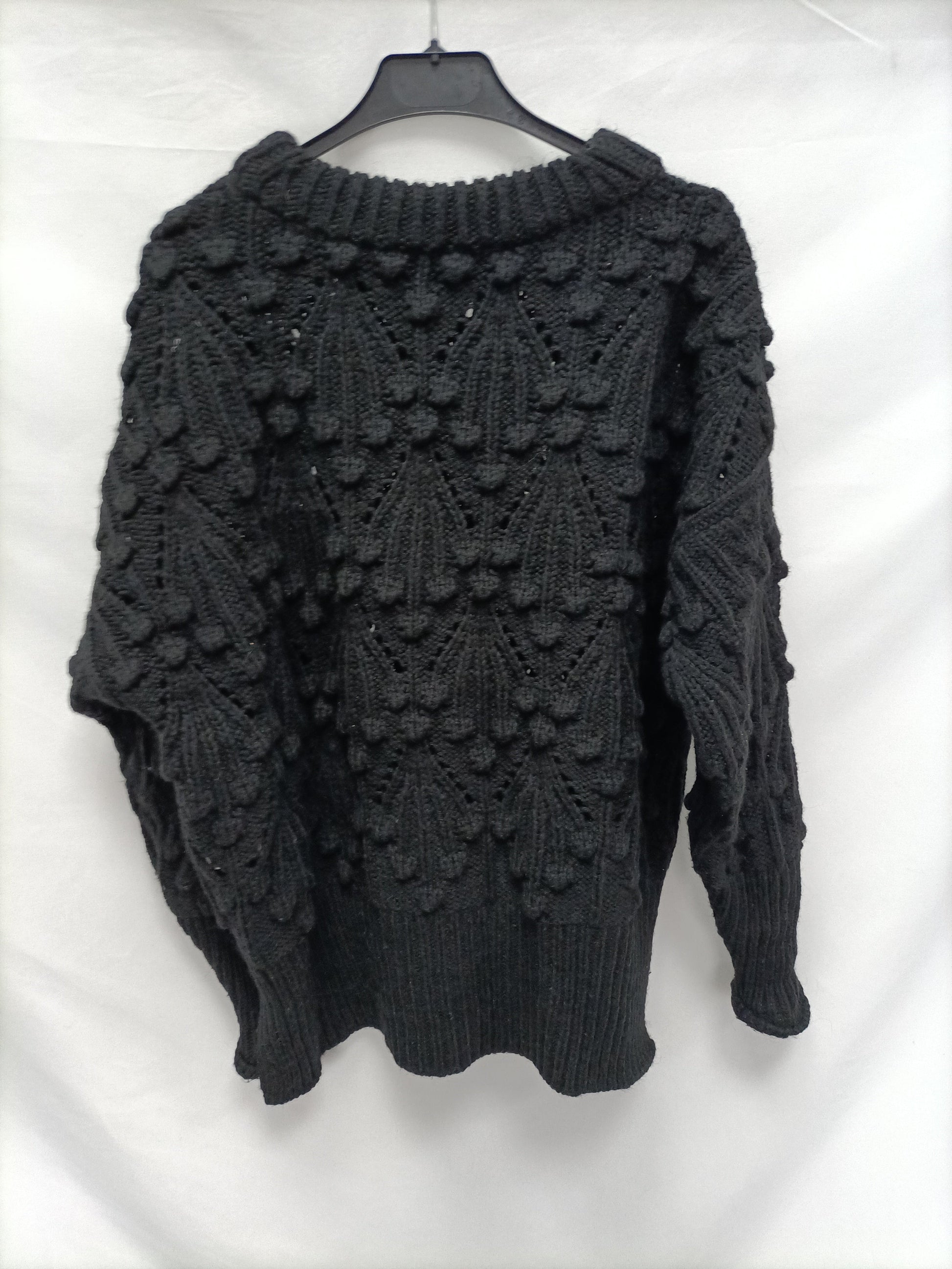 Jersey negro estilo oversized con dibujos con la propia lana. Elastico. Largo 67 cm