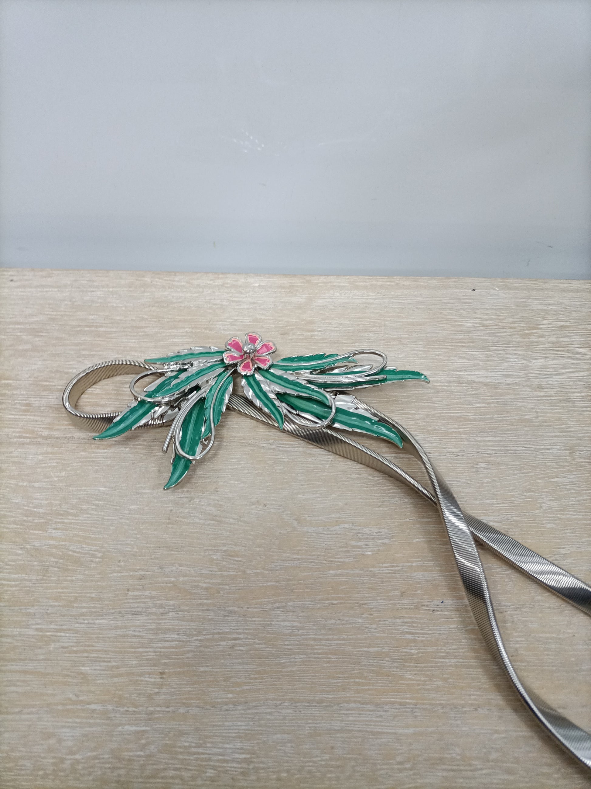 Cinrurón fino metalizado con flor en color