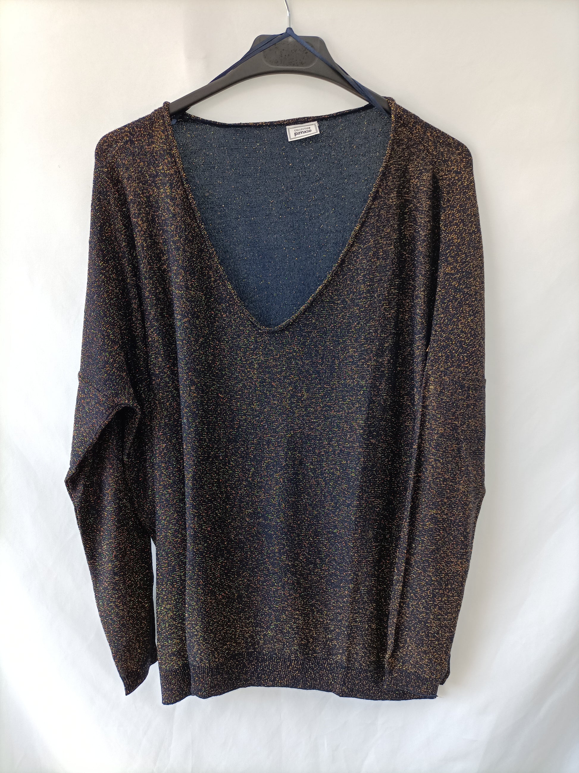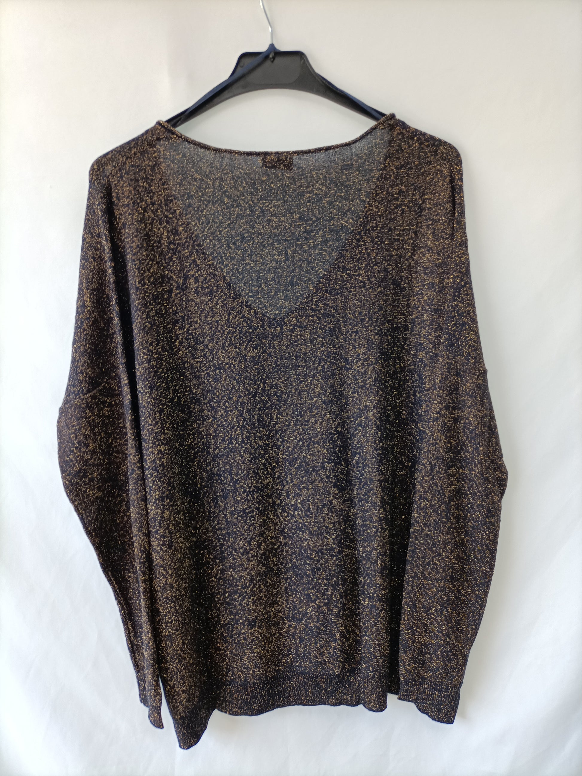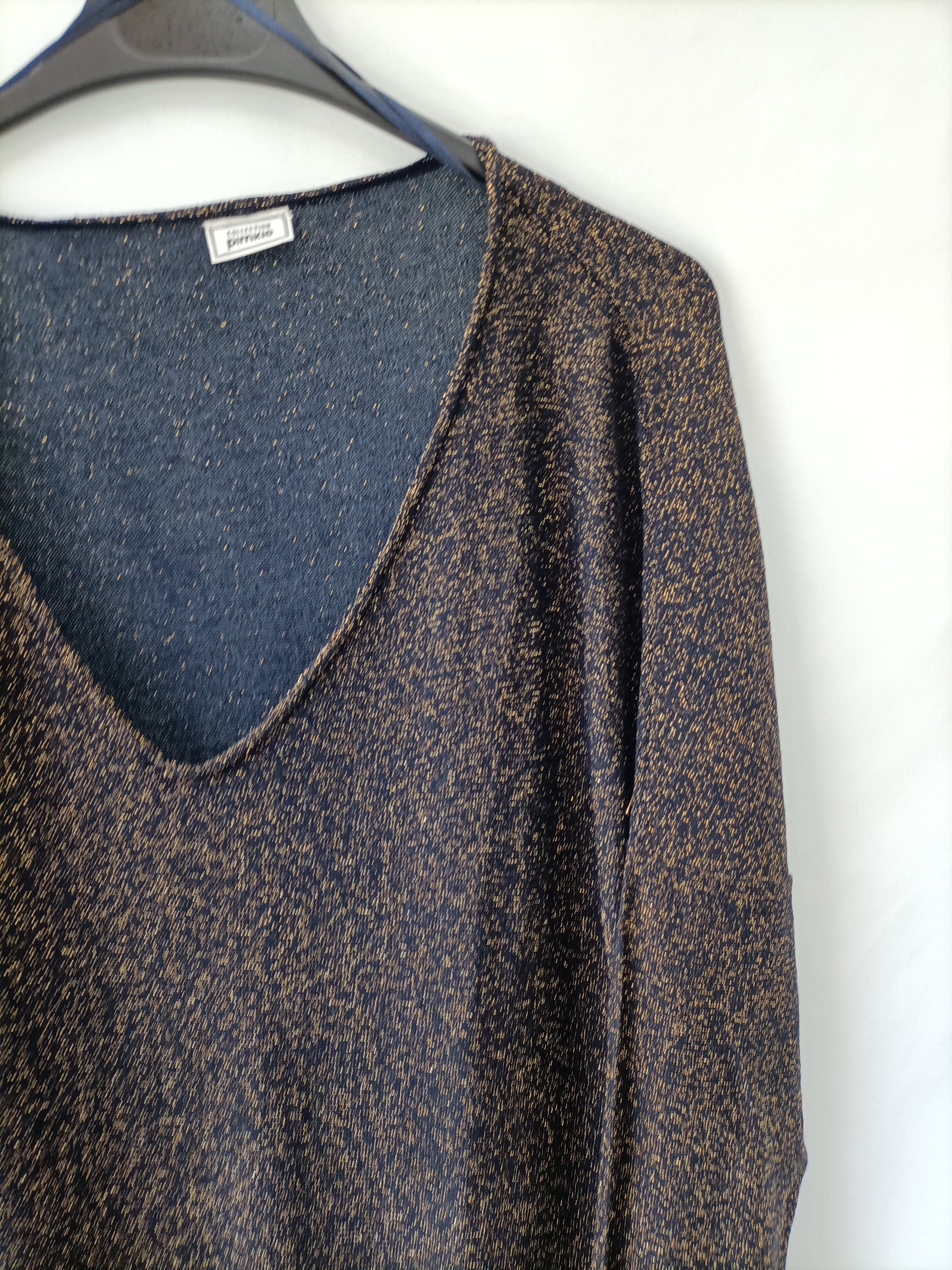Jersey nazulcfluido y fino con detalle de hilos doradosm. Largo 66 cm